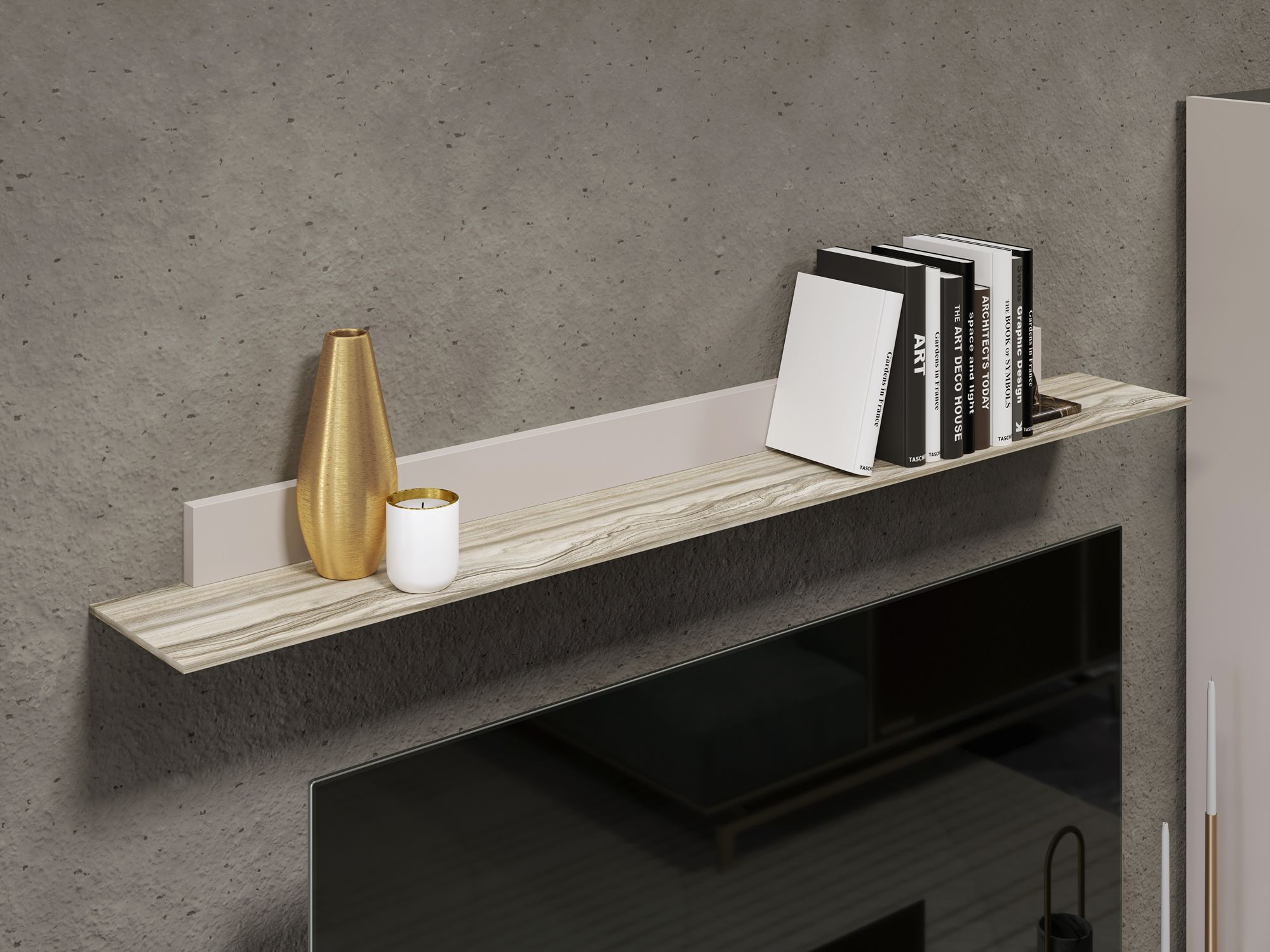 Лаконичная открытая полка ARTA выполнена в сочетании акцентной текстуры Мрамор Medio и элемента в отделке Cachmere матовый. Допустимая нагрузка – 5 кг. Крепления входят в комплектацию.
