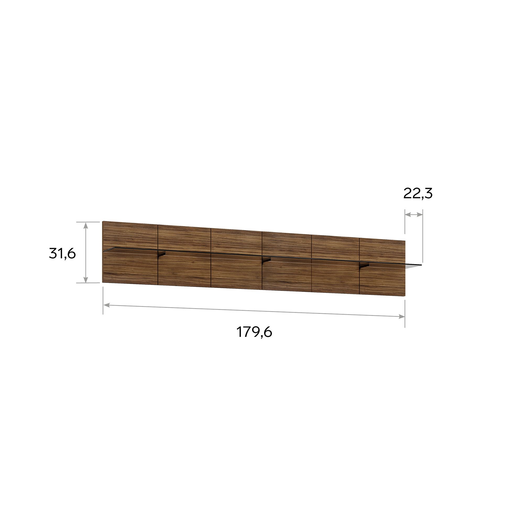 Декоративная панель MONAKO в отделке шпоном оснащается полкой из закаленного тонированного стекла (оттенок Бронза). Допустимая нагрузка – 3 кг. Крепления входят в комплектацию. Возможно создание вертикальных и горизонтальных комбинаций из нескольких полок.