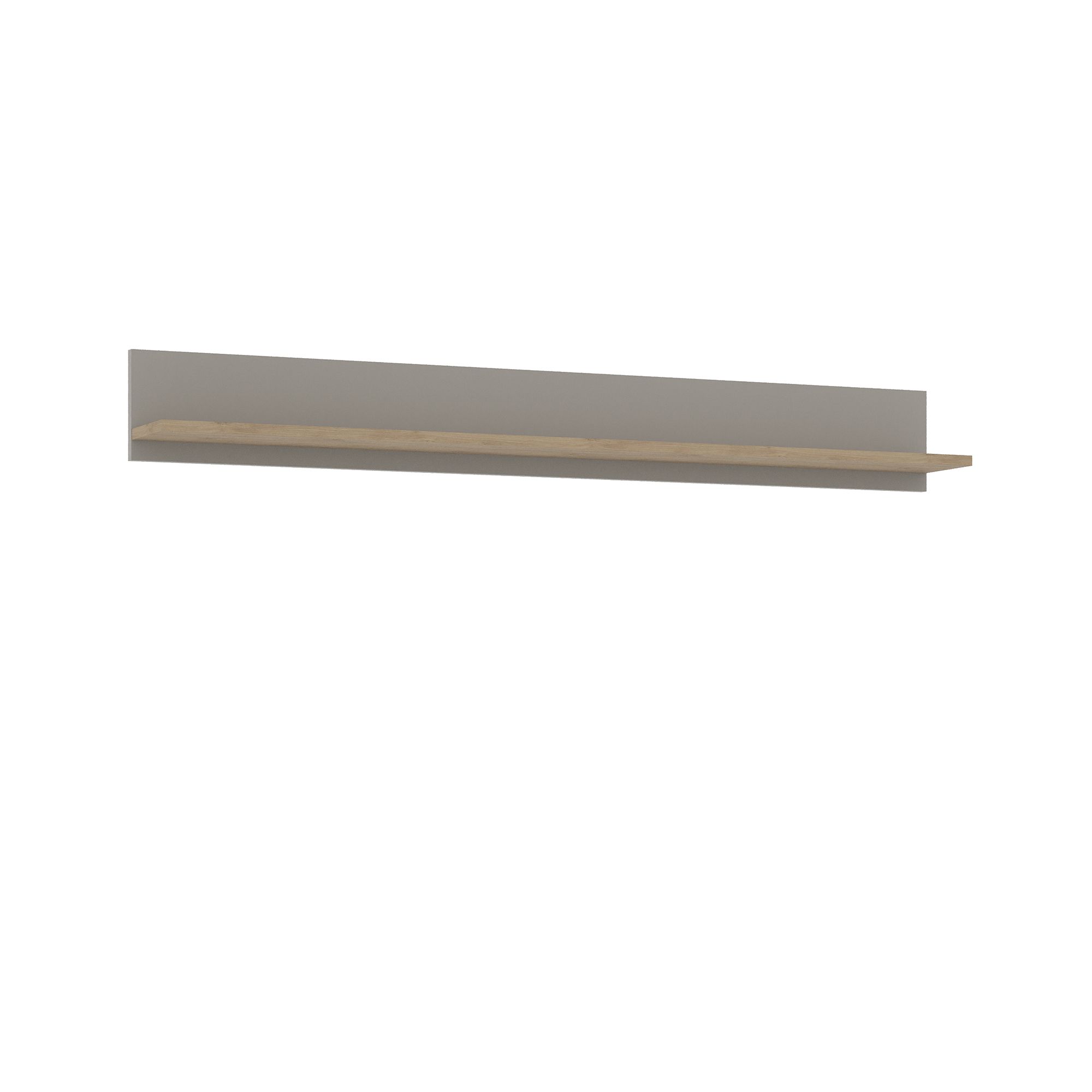 Дизайн полки TERAMO выполнен в сочетании древесной текстуры Дуб Кендал натуральный и монохромной отделки. Максимальная допустимая нагрузка составляет 3 кг. Система скрытой навески с регулировкой по высоте 8 мм входит в комплектацию.