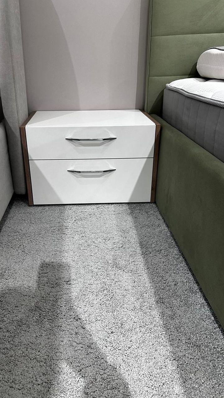 Тумба прикроватная в текстуре Arumi / Белый матовый. Металлические ручки в отделке «хром-глянец» входят в стоимость.