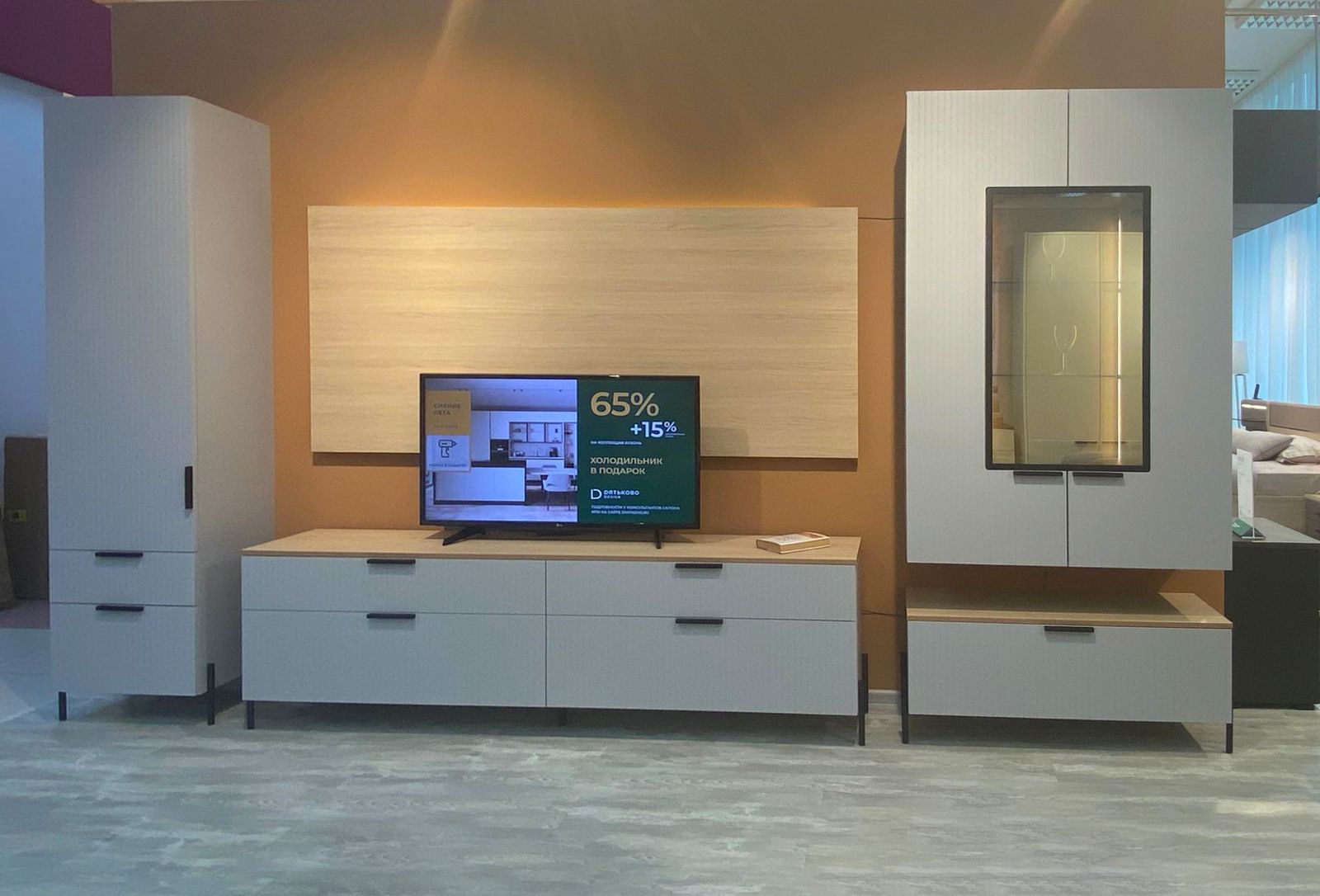 Гостиная в текстуре Серый перламутровый / Дуб Виченца.