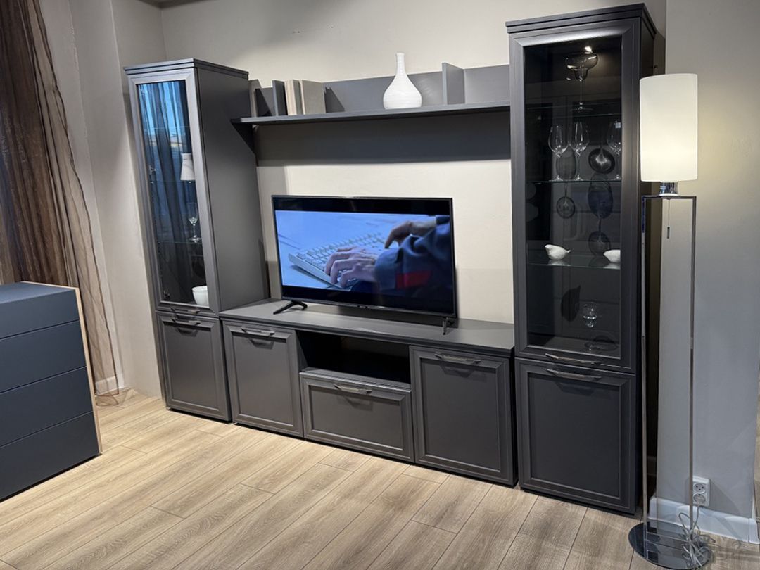 Состав композиции: полка, 2 шкафа-витрины, тумба под ТВ.