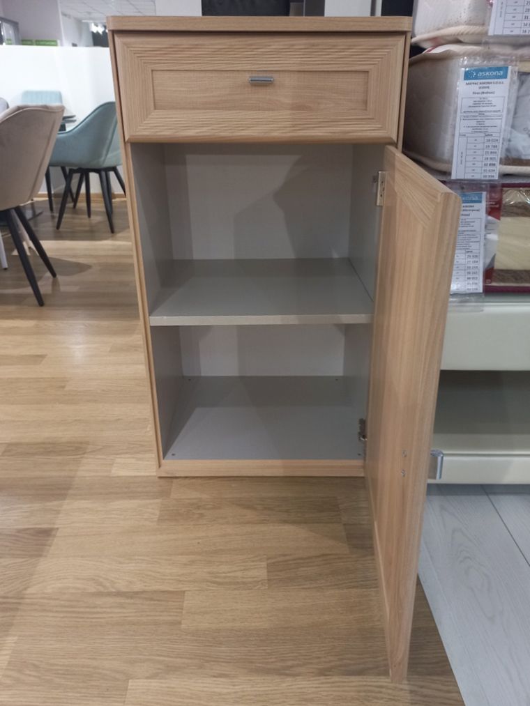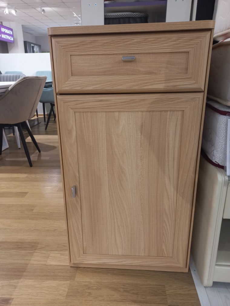 Тумба универсальная с ящиком и распашным фасадом. Текстура – Вяз Salerno светлый / тиснение Холст.