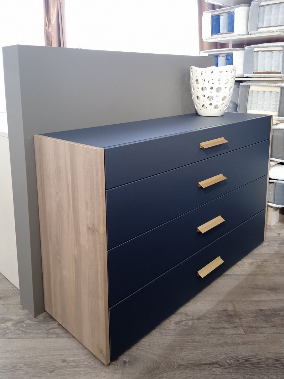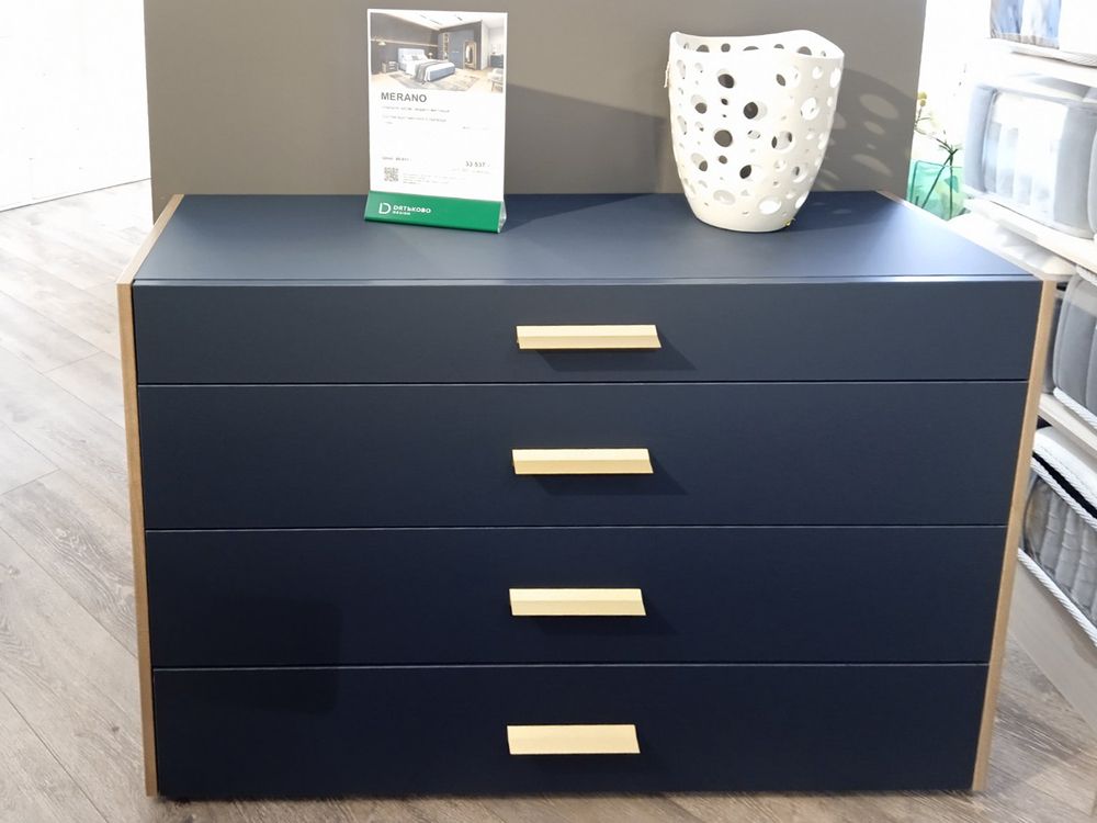 Комод в текстуре Arumi / Индиго матовый. Ручки – матовое золото.