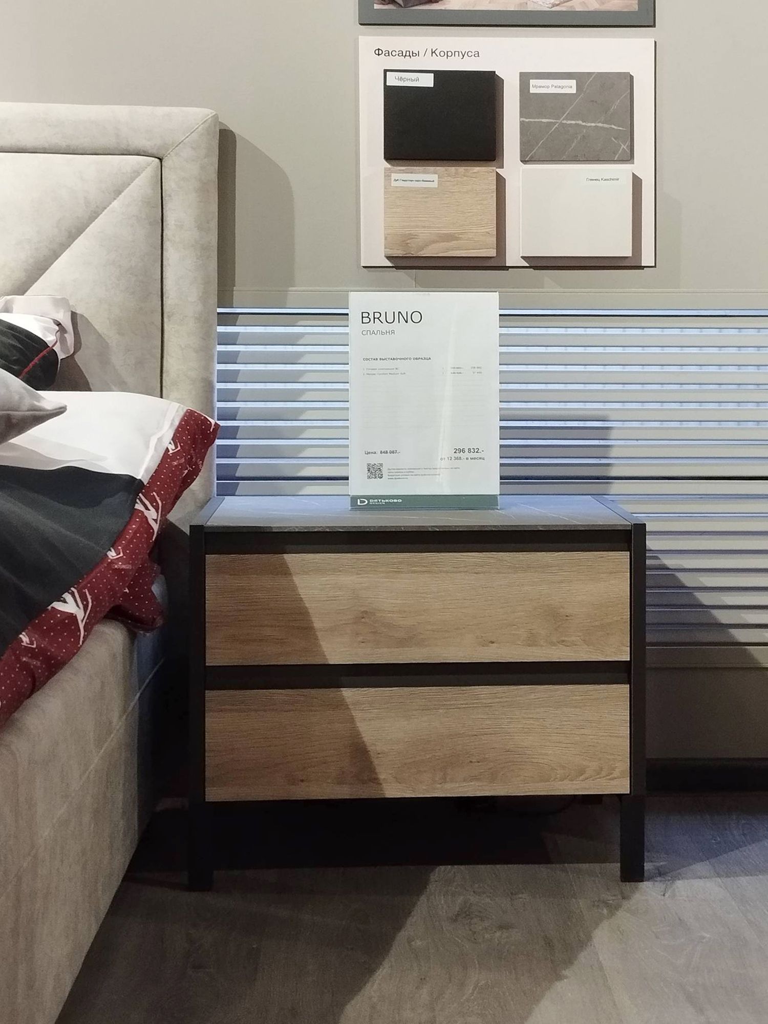 Готовая мебельная композиция для спальни в текстуре Черный / Дуб Гладстоун Серо- бежевый.