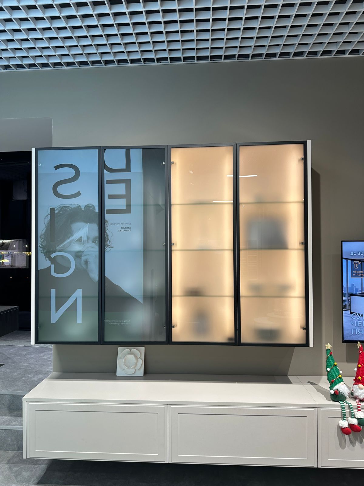 Имеется дефект - не горит подсветка в двух из четырех витрин (на последних фото показано).