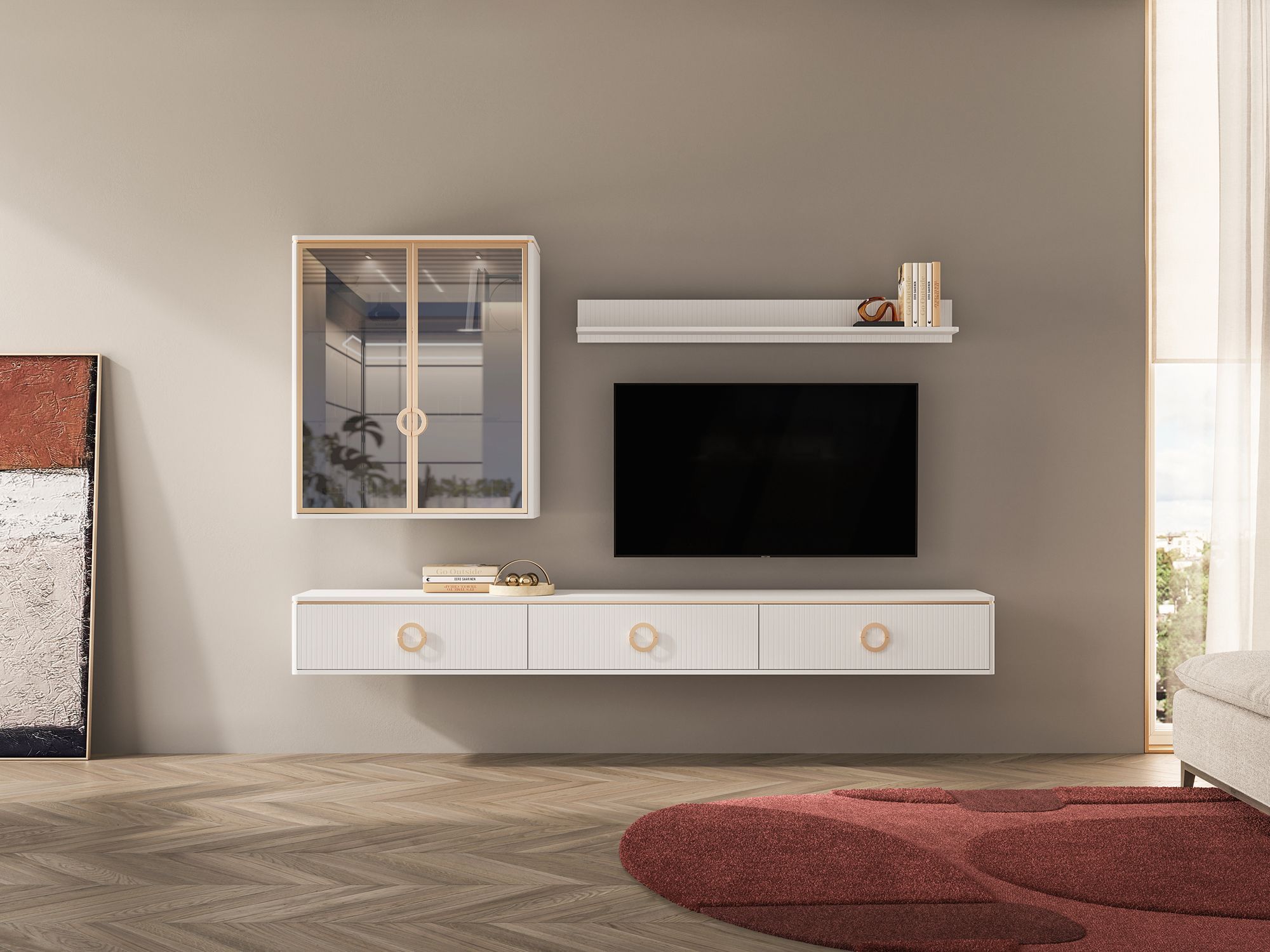 Изящное обрамление стеклянных фасадов придает мебели элегантный вид. Отделка рамок «рифмуется» с другими элементами в оттенке матового золота, создавая стильный и сбалансированный дизайн. Высококачественные материалы обеспечивают их долговечность и прочность.