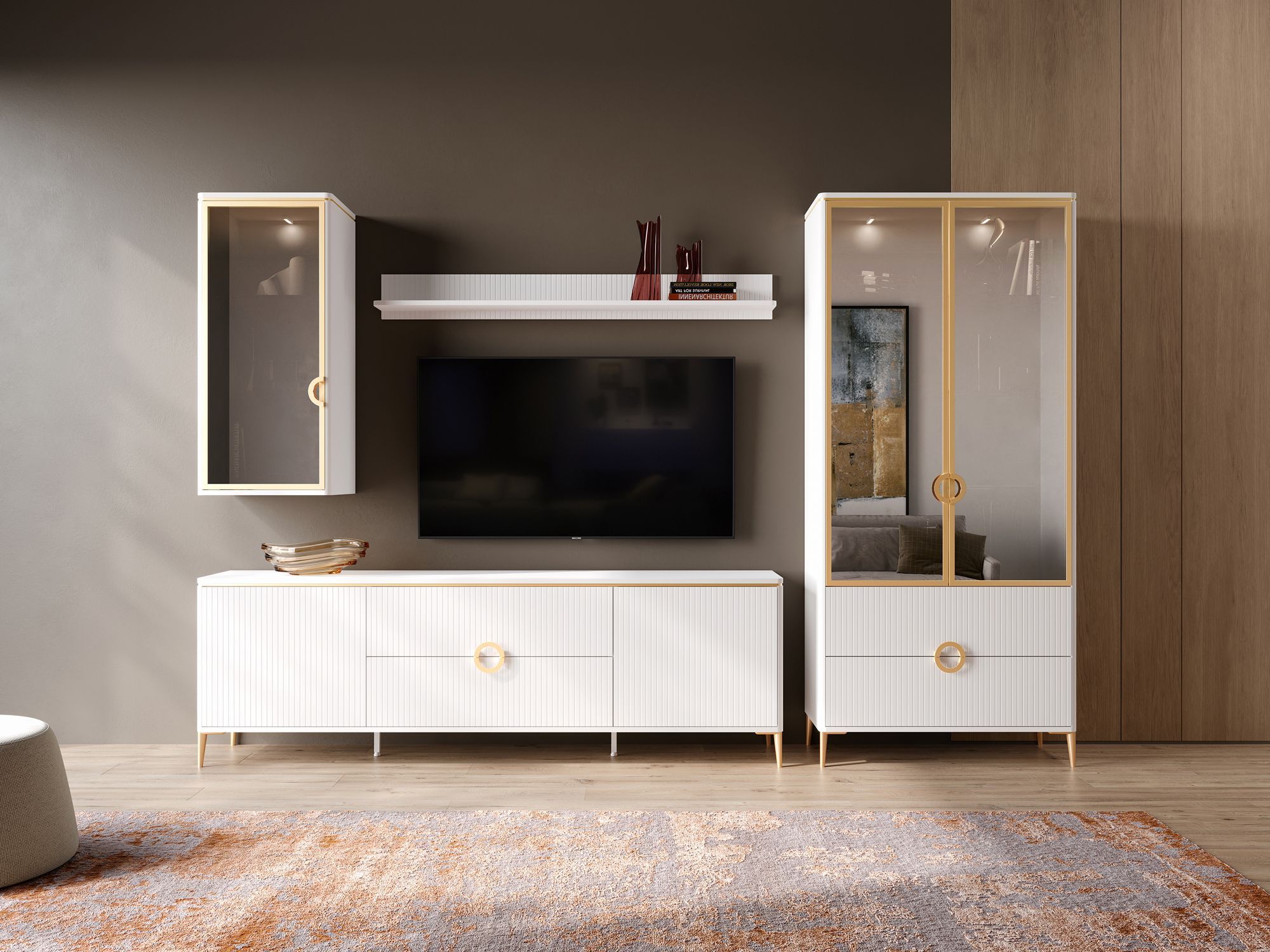 Изящное обрамление стеклянных фасадов придает мебели элегантный вид. Отделка рамок «рифмуется» с другими элементами в оттенке матового золота, создавая стильный и сбалансированный дизайн. Высококачественные материалы обеспечивают их долговечность и прочность.