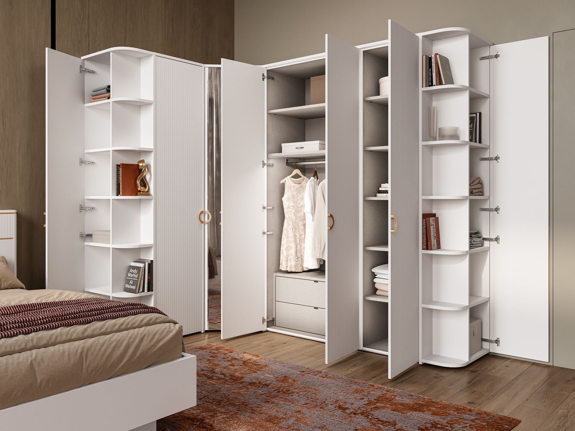 Коллекция включает мебель в едином стиле для гостиных и спален, что позволяет сформировать функциональные зоны, соответствующие индивидуальным предпочтениям, и найти гармоничные интерьерные решения как для типовой, так и для нестандартной планировки.