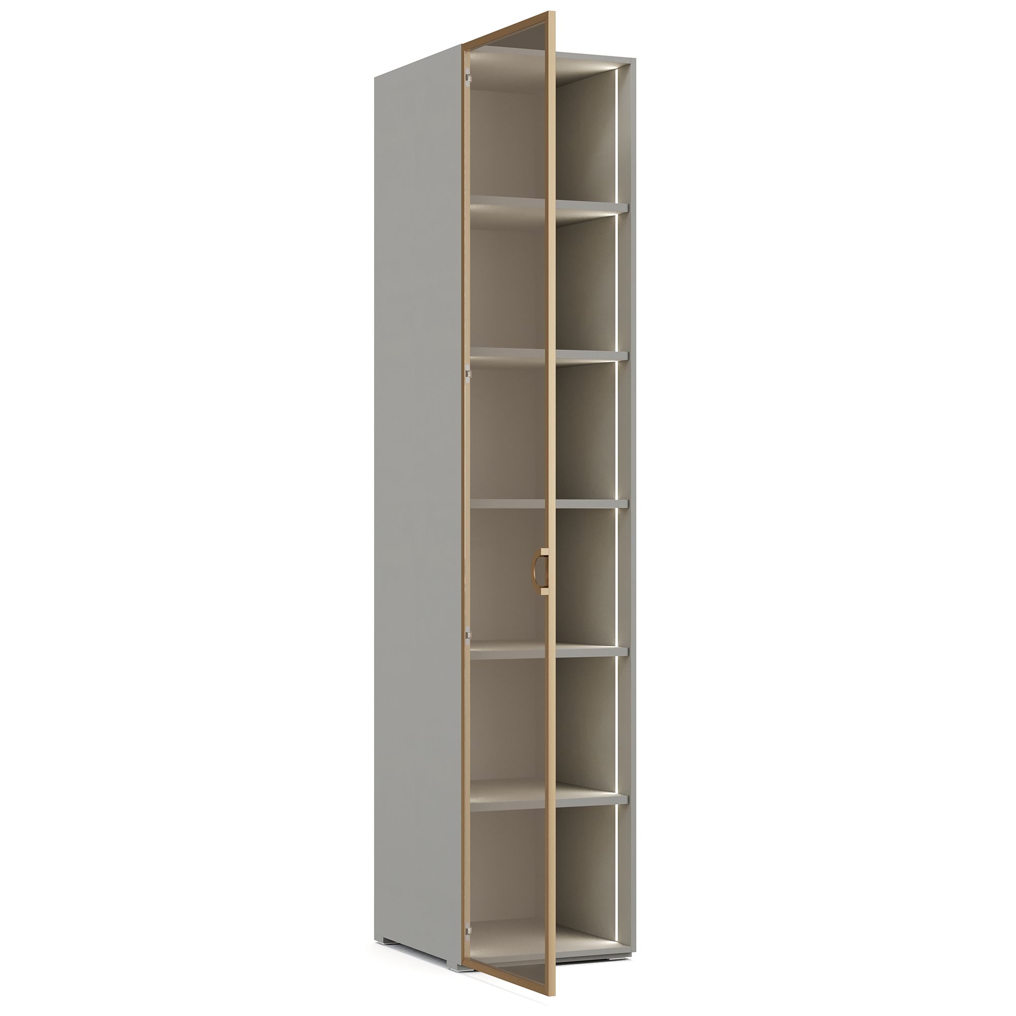 Изящное обрамление стеклянных фасадов придает мебели элегантный вид. Отделка рамок «рифмуется» с другими элементами в оттенке матового золота, создавая стильный и сбалансированный дизайн. Высококачественные материалы обеспечивают их долговечность и прочность.