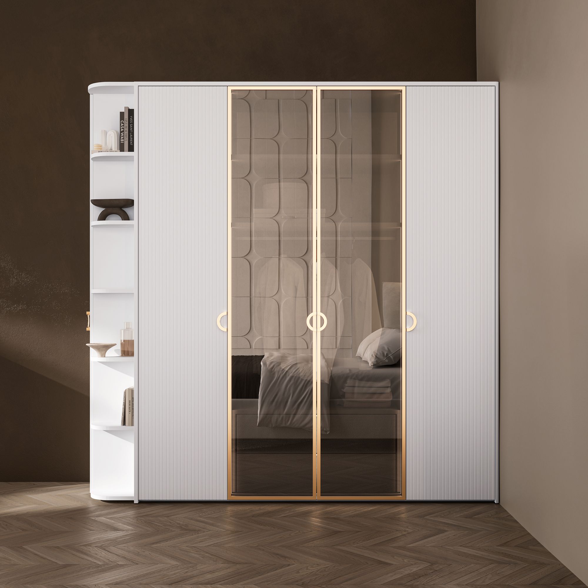 Изящное обрамление стеклянных фасадов придает мебели элегантный вид. Отделка рамок «рифмуется» с другими элементами в оттенке матового золота, создавая стильный и сбалансированный дизайн. Высококачественные материалы обеспечивают их долговечность и прочность.