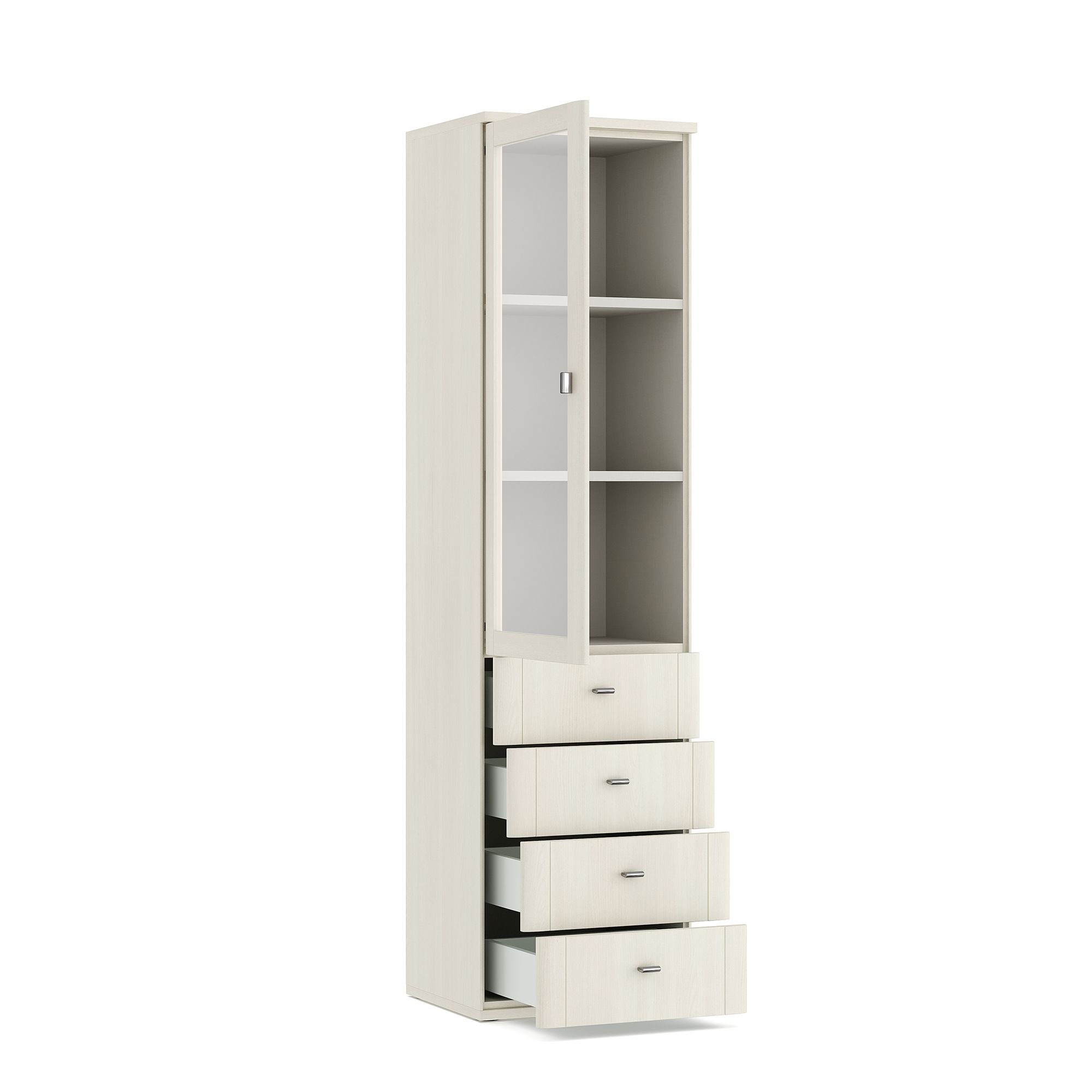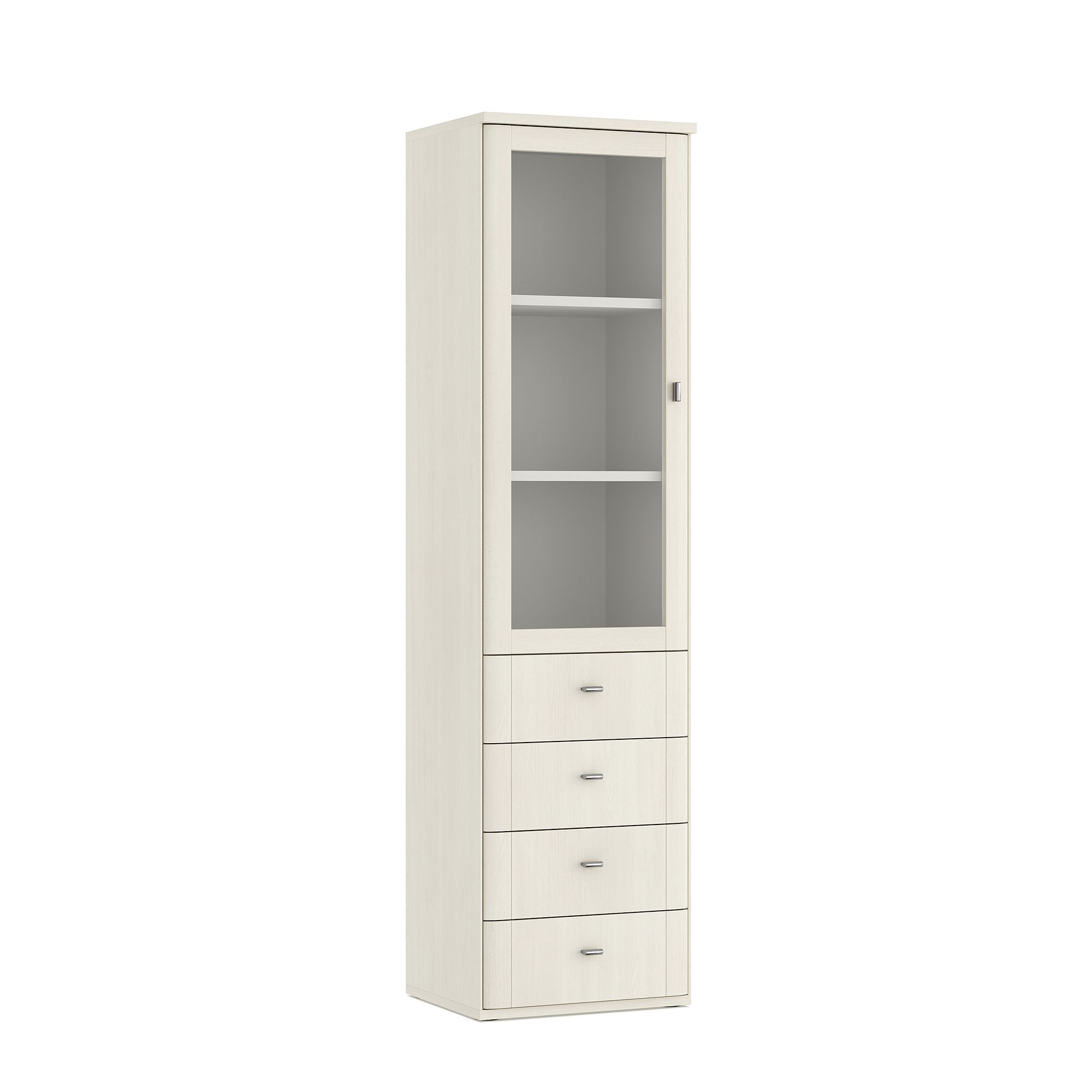 Шкаф-витрина ELEGANTE с распашным фасадом и выдвижными ящиками отлично подходит как для гостиных, так и для молодежных комнат, домашних библиотек и рабочих кабинетов. Доводчики для плавного закрывания фасадов входят в базовую комплектацию. За плавное открывание выдвижных ящиков отвечают направляющие скрытого монтажа. Дизайн шкафа предусматривает несколько вариантов ручек на выбор.