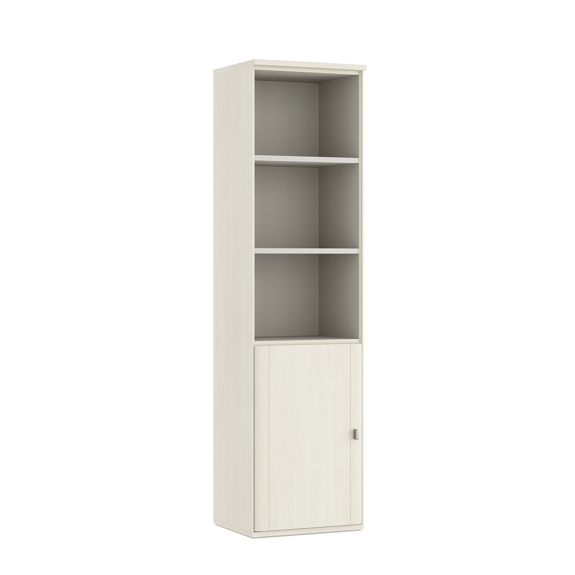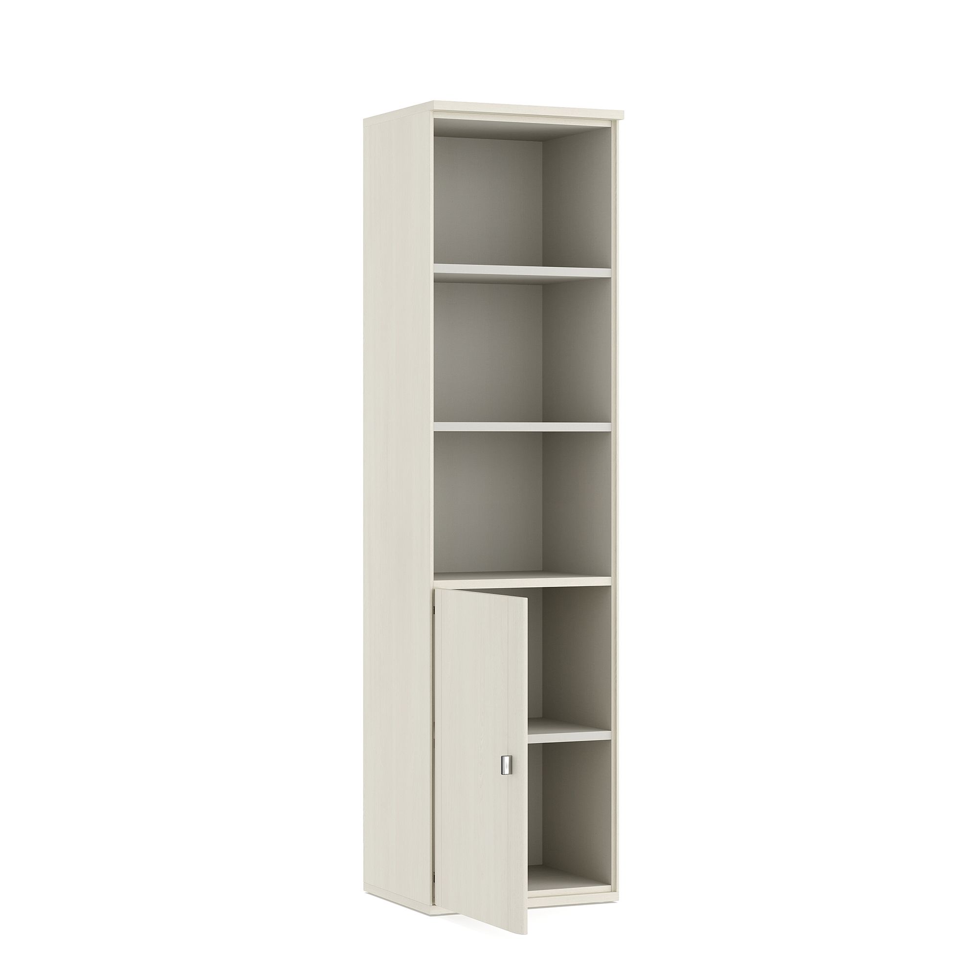Шкаф ELEGANTE с открытыми полками и распашным фасадом отлично подходит как для гостиных, так и для молодежных комнат, домашних библиотек и рабочих кабинетов. Доводчики для плавного закрывания фасадов входят в базовую комплектацию. Дизайн шкафа предусматривает несколько вариантов ручек на выбор.