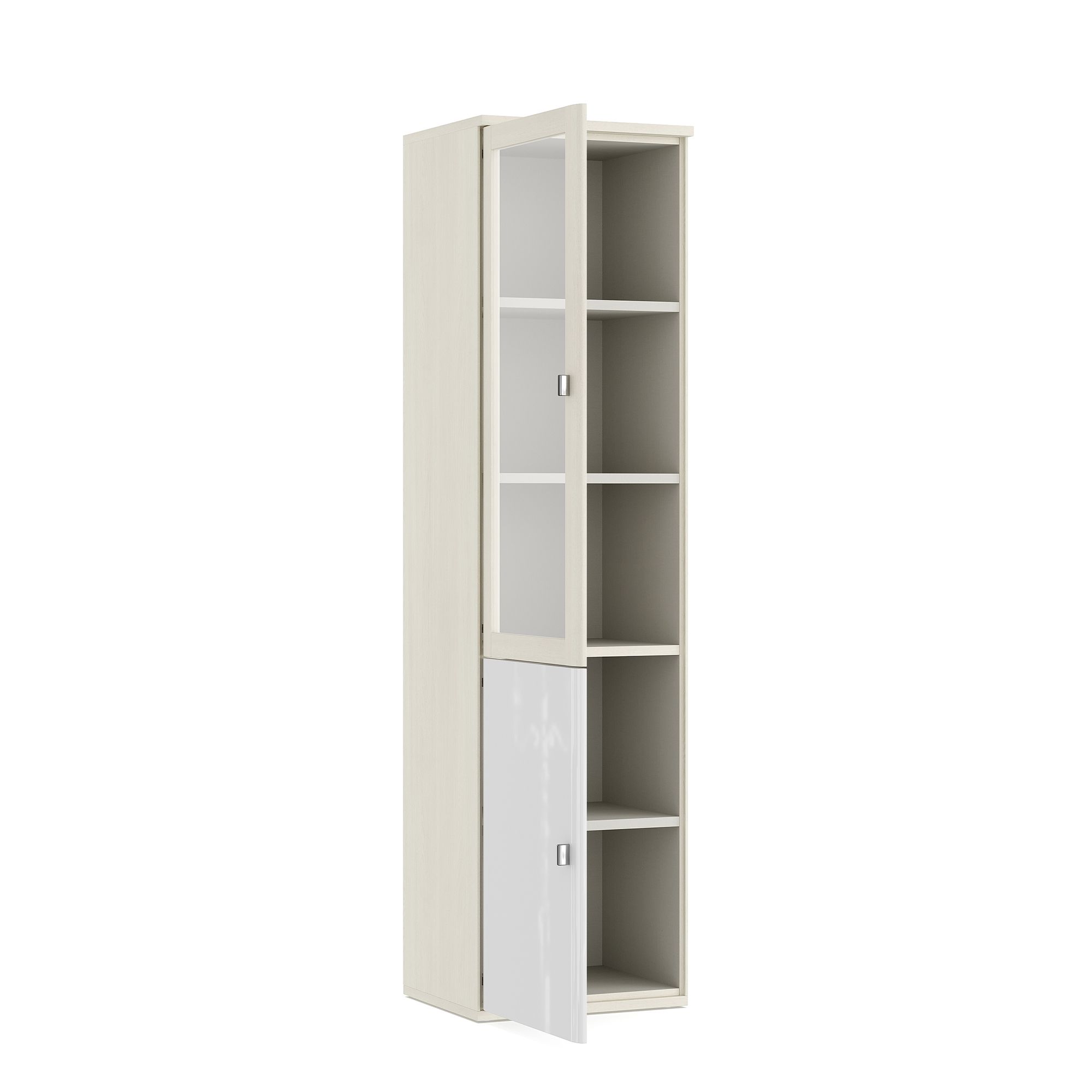 Шкаф-витрина ELEGANTE, оснащенный стеклянным и сплошным фасадами, отлично подходит как для гостиных, так и для молодежных комнат, домашних библиотек и рабочих кабинетов. Внутреннее наполнение модели представляет собой систему полок. Возможно исполнение как с правым, так и с левым открыванием фасада. Доводчики для плавного закрывания фасадов входят в базовую комплектацию. Дизайн шкафа предусматривает несколько вариантов ручек на выбор.