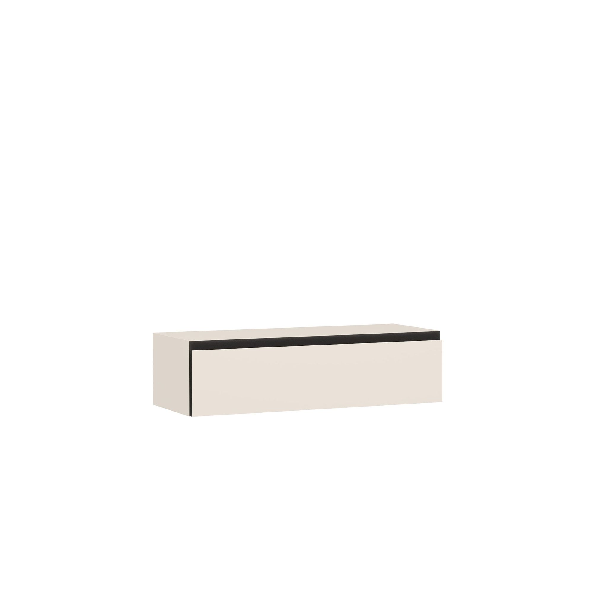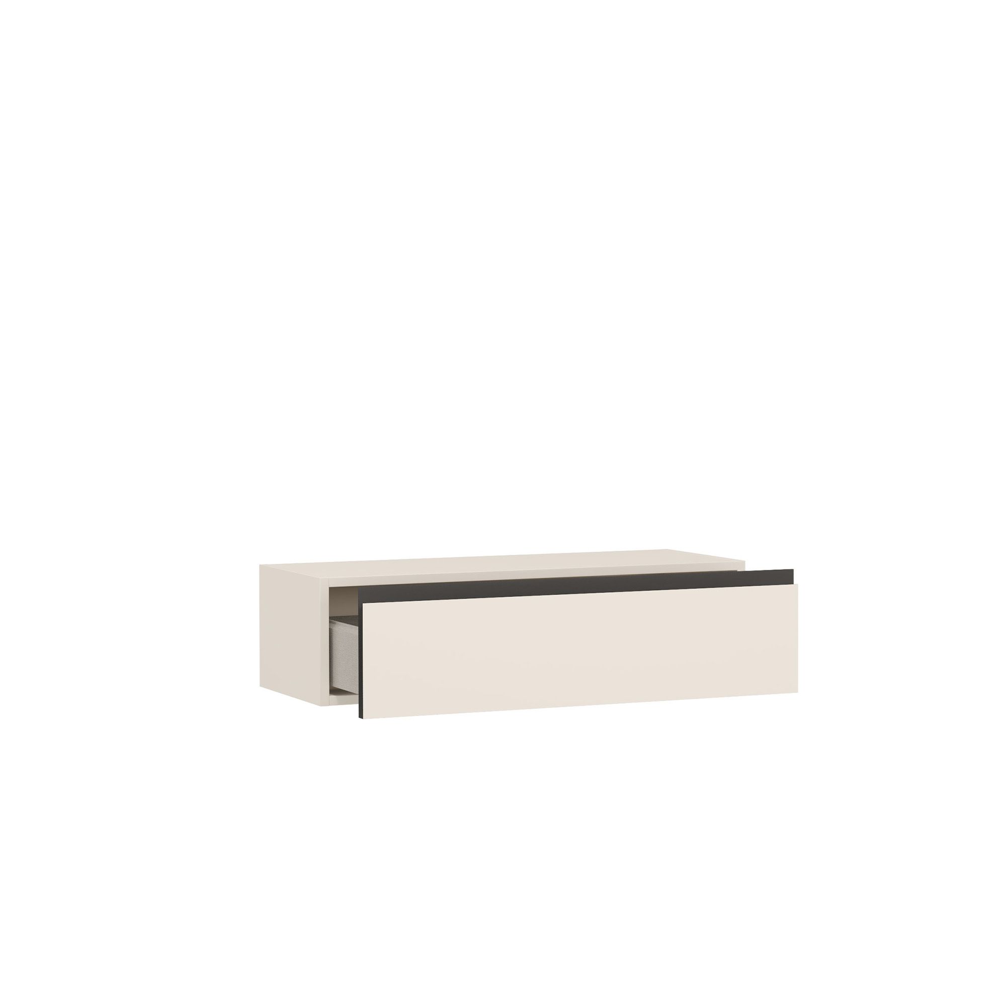 Навесной шкаф ARTA с выдвижным ящиком оснащен фасадом с интегрированной J-ручкой графитового цвета. Внутренний декор ящика – текстура Шенилл, повторяющая рисунок плетения натуральной ткани. В стоимость изделия включена крышка в тон корпуса (возможна замена на крышку в текстуре Мрамор Medio). Использование шкафа без этого элемента дизайном не предусмотрено.