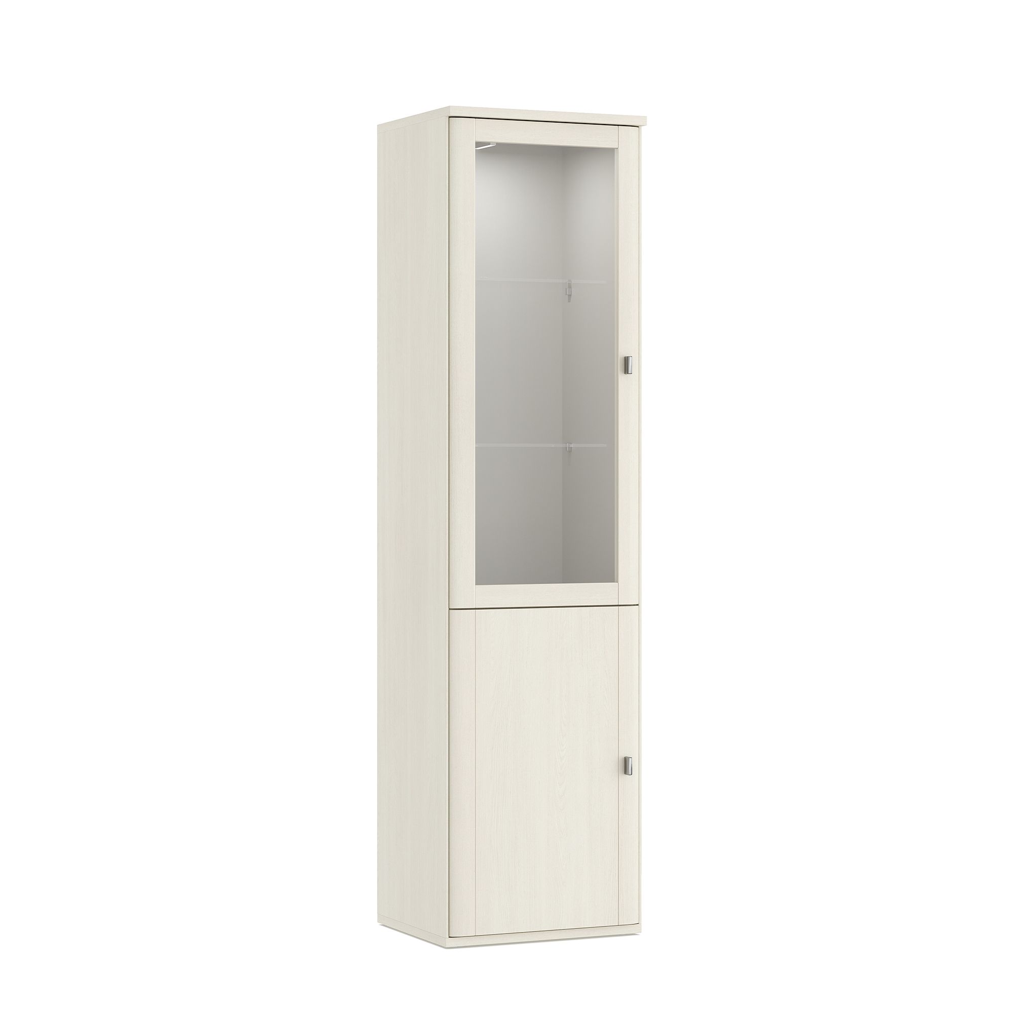 Шкаф-витрина ELEGANTE со стеклянными полками и распашным фасадом подходит для посуды и декора. Возможно исполнение как с правым, так и с левым открыванием фасада. Доводчики для плавного закрывания фасадов входят в базовую комплектацию. Дизайн шкафа предусматривает несколько вариантов ручек на выбор. Возможно дополнительное оснащение шкафа системой подсветки (заказывается отдельно).