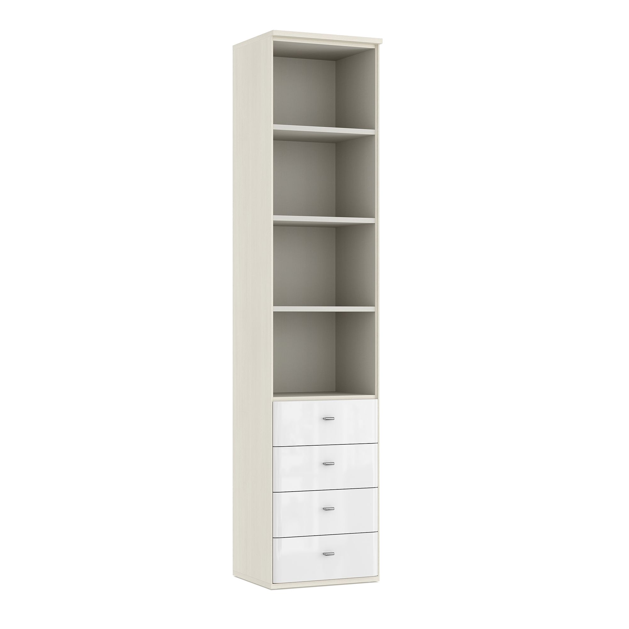 Шкаф ELEGANTE с открытыми полками и выдвижными ящиками отлично подходит как для гостиных, так и для молодежных комнат, домашних библиотек и рабочих кабинетов. За плавное открывание выдвижных ящиков отвечают направляющие скрытого монтажа. Дизайн шкафа предусматривает несколько вариантов ручек на выбор.