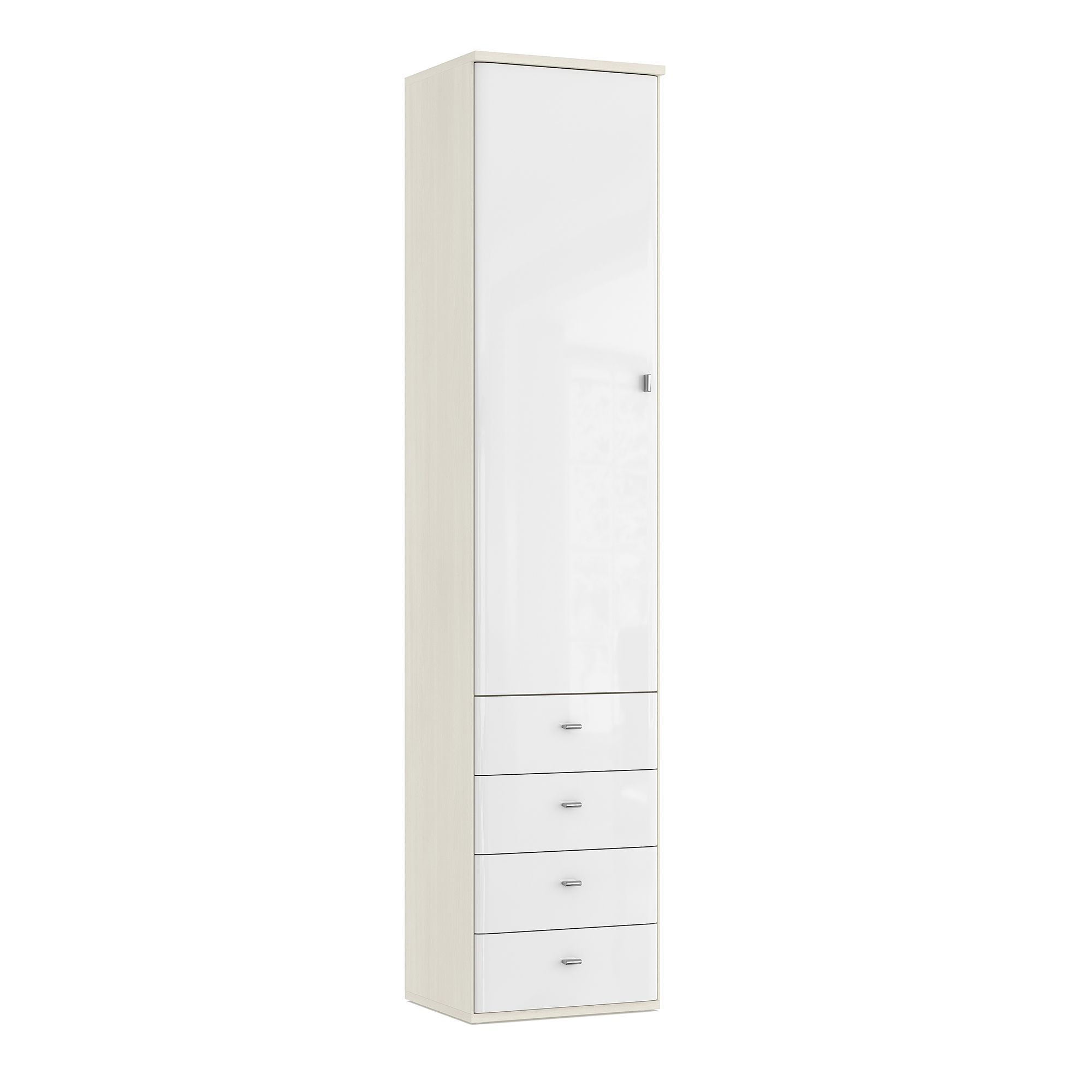 Шкаф ELEGANTE с распашным фасадом и выдвижными ящиками отлично подходит как для гостиных, так и для молодежных комнат, домашних библиотек и рабочих кабинетов. Доводчики для плавного закрывания фасадов входят в базовую комплектацию. За плавное открывание выдвижных ящиков отвечают направляющие скрытого монтажа. Дизайн шкафа предусматривает несколько вариантов ручек на выбор.