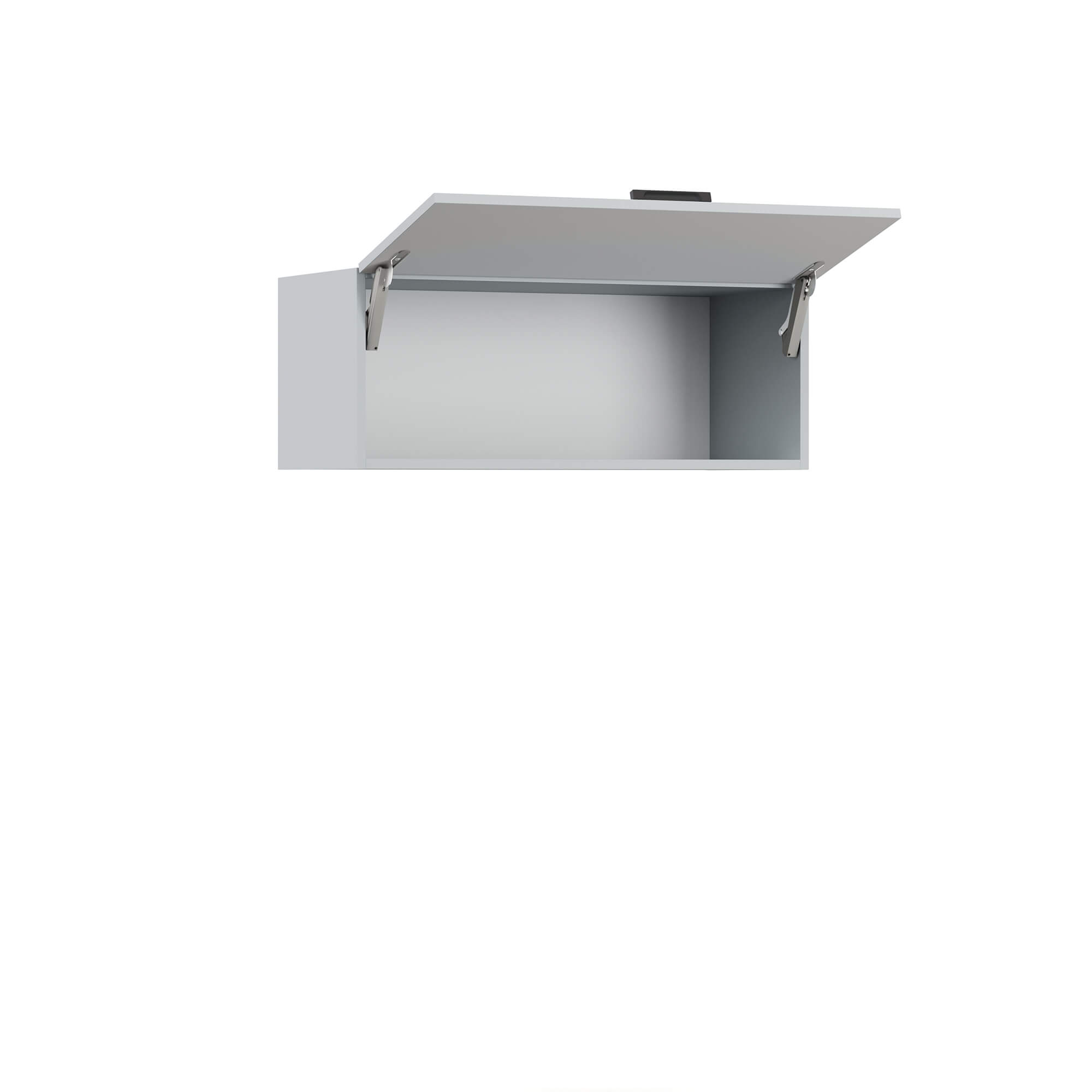 Навесной шкаф NAPOLI оснащен откидным фасадом с открыванием вверх. Максимальная распределенная нагрузка на элемент составляет 15 кг.