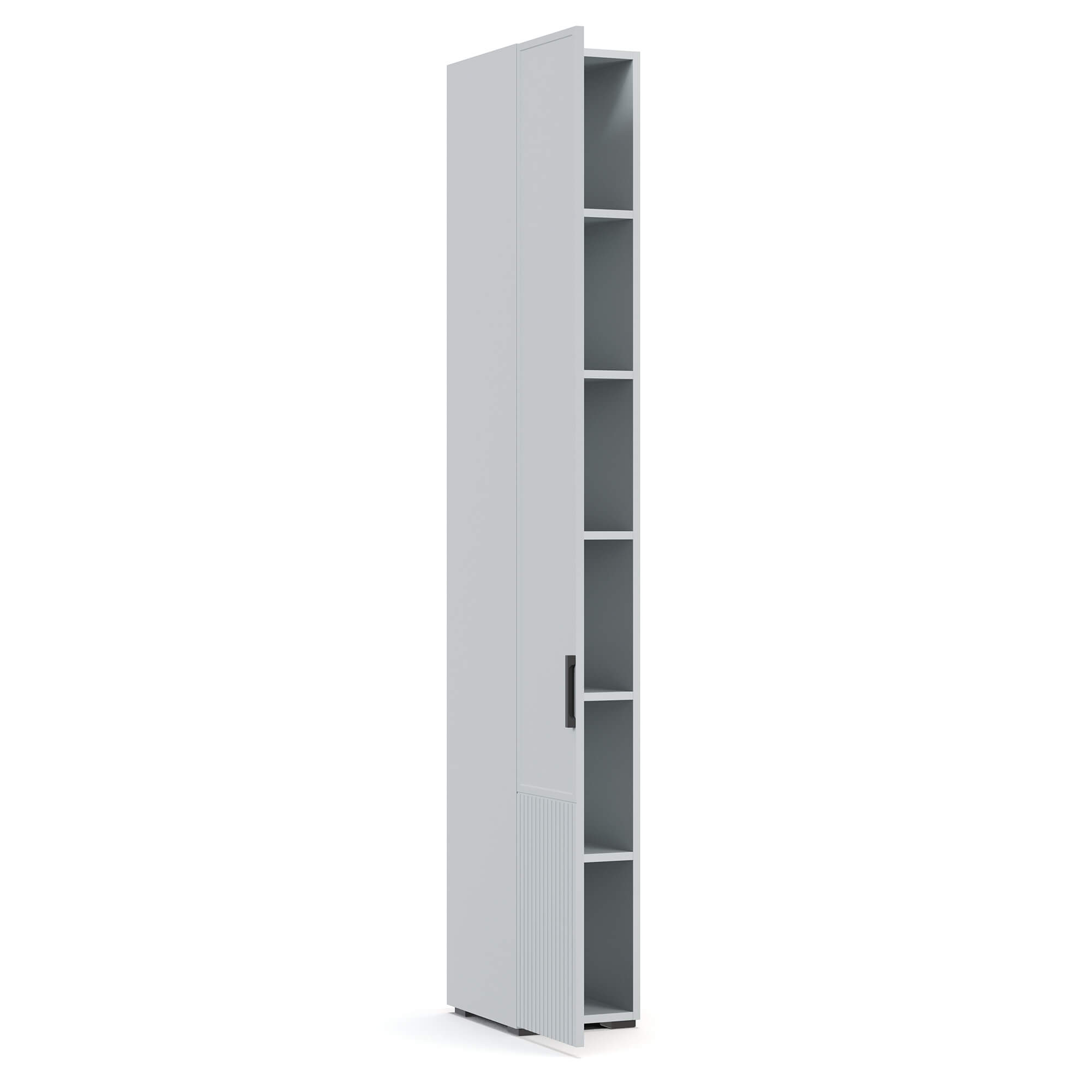 Однодверный шкаф NAPOLI оснащен распашным фасадом, верхняя часть которого декорирована тонкой рамкой, а нижняя – вертикальной фрезеровкой. Предусмотрено исполнение как с правым, так и с левым открыванием. Внутреннее наполнение шкафа представляет собой систему полок из ЛДСП.