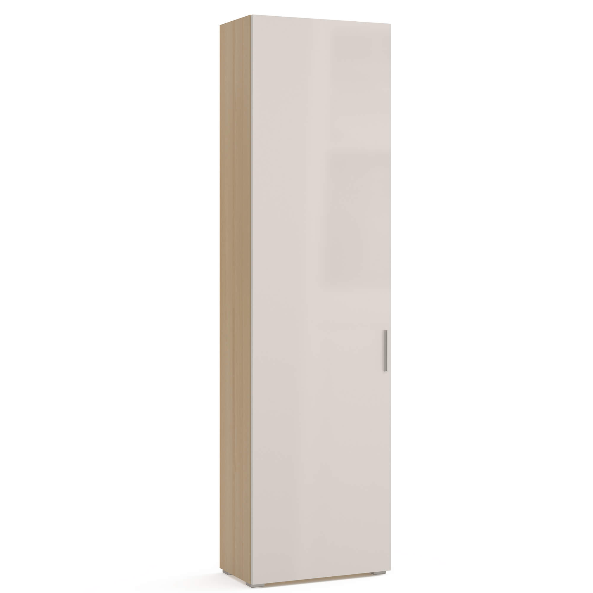 Компактный шкаф-пенал ESTE оснащен глянцевым фасадом, за которым располагается система полок. Возможно как правое, так и левое открывание фасада.