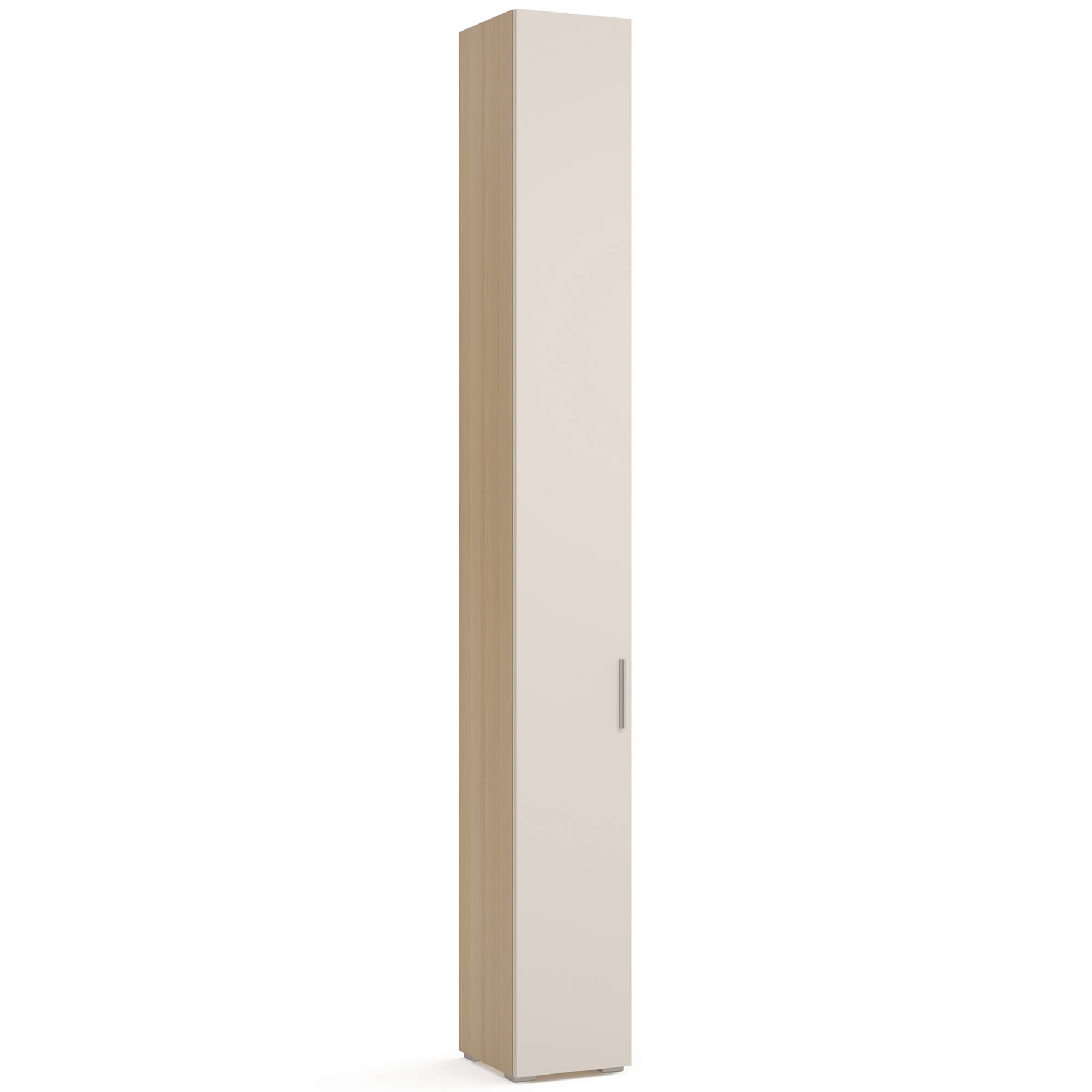 Компактный шкаф-пенал ESTE оснащен фасадом в отделке матовым покрытием Cachmere, за которым располагается система полок. Возможно как правое, так и левое открывание фасада.