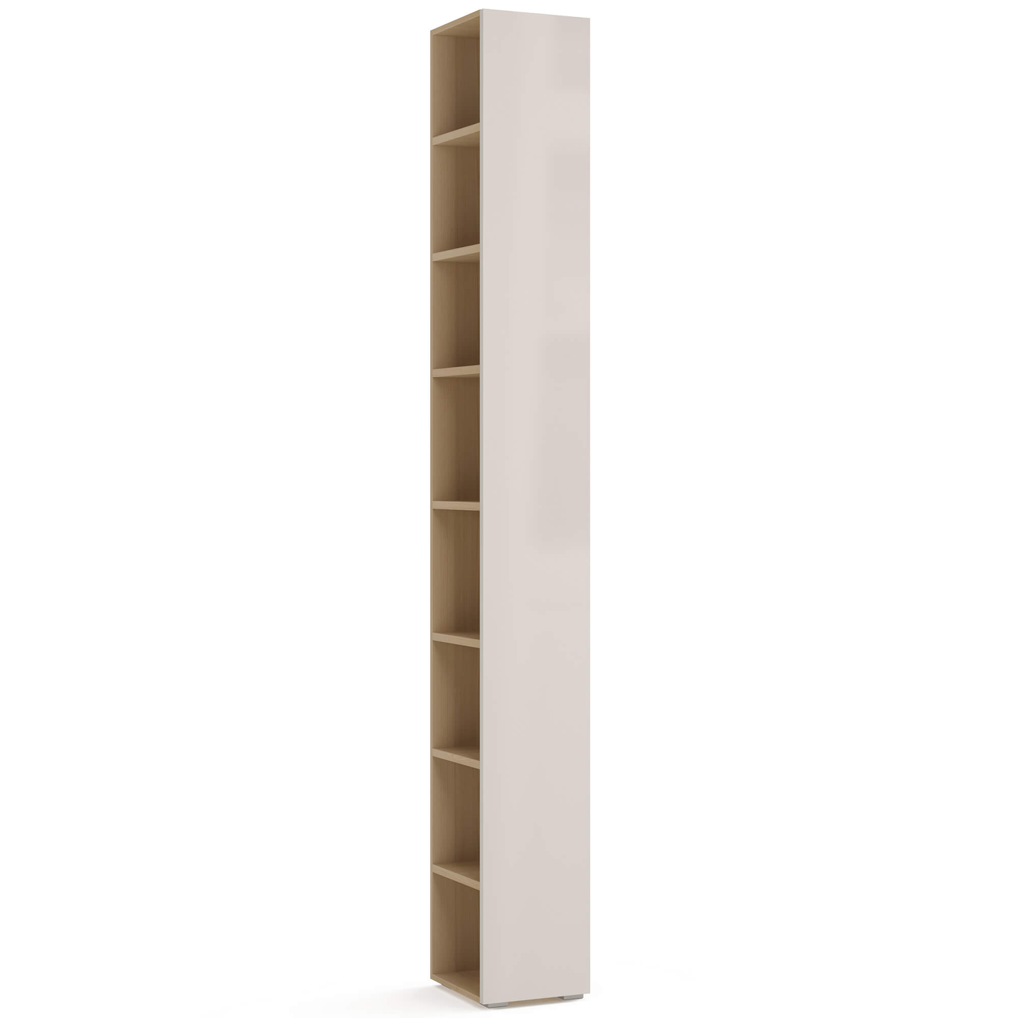 Модель шкафа ESTE сочетает функции открытого и закрытого хранения и предназначена для использования в качестве завершающего элемента шкафной группы. За фасадом, который предусматривает исполнение как с левым, так и с правым открыванием, расположена система полок. Открытые полки отлично подходят для размещения декора.