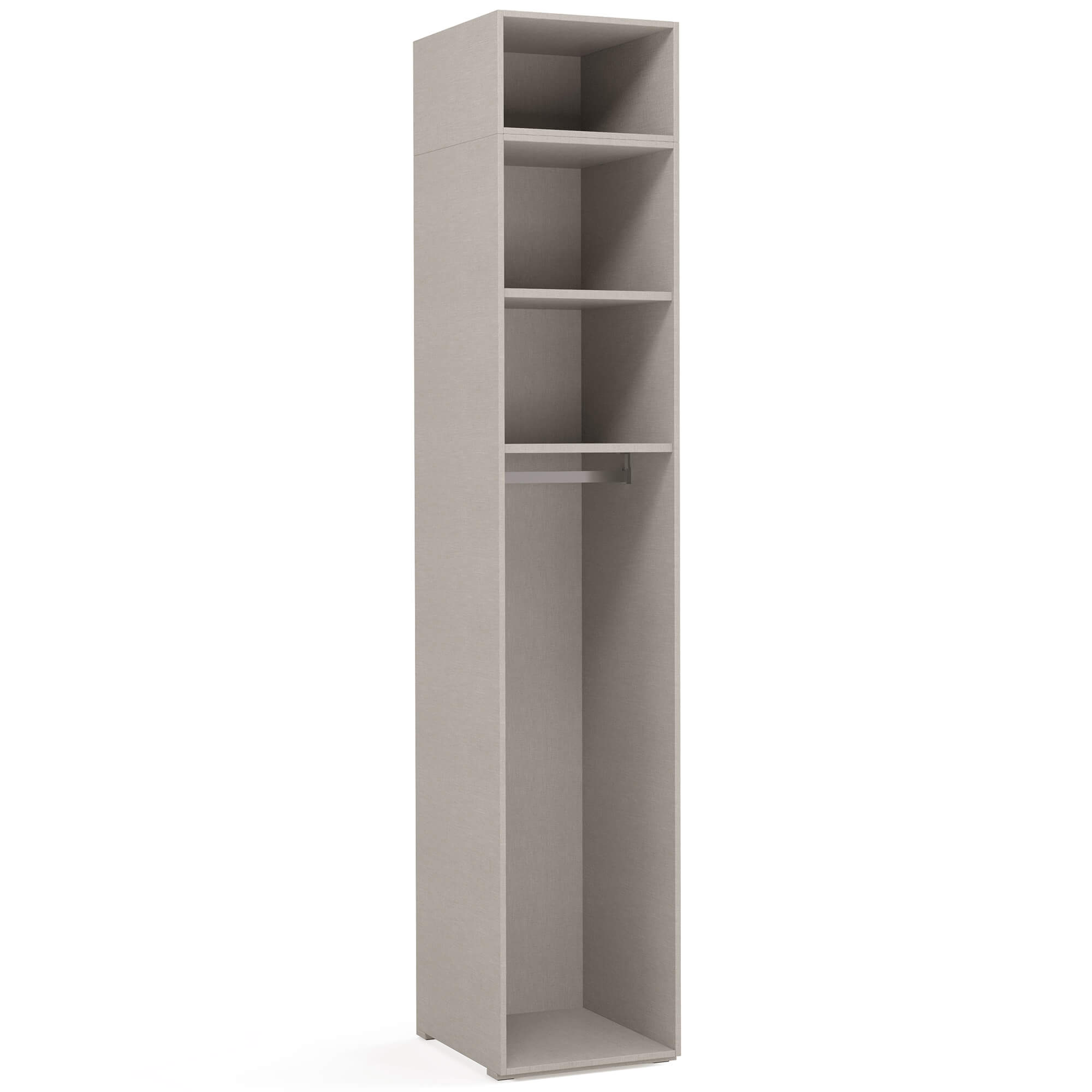 Боковые стенки (2 шт.) в текстуре Cachmere включены в стоимость. При составлении комбинации из нескольких шкафов количество стенок может варьироваться в зависимости от выбранных модулей.