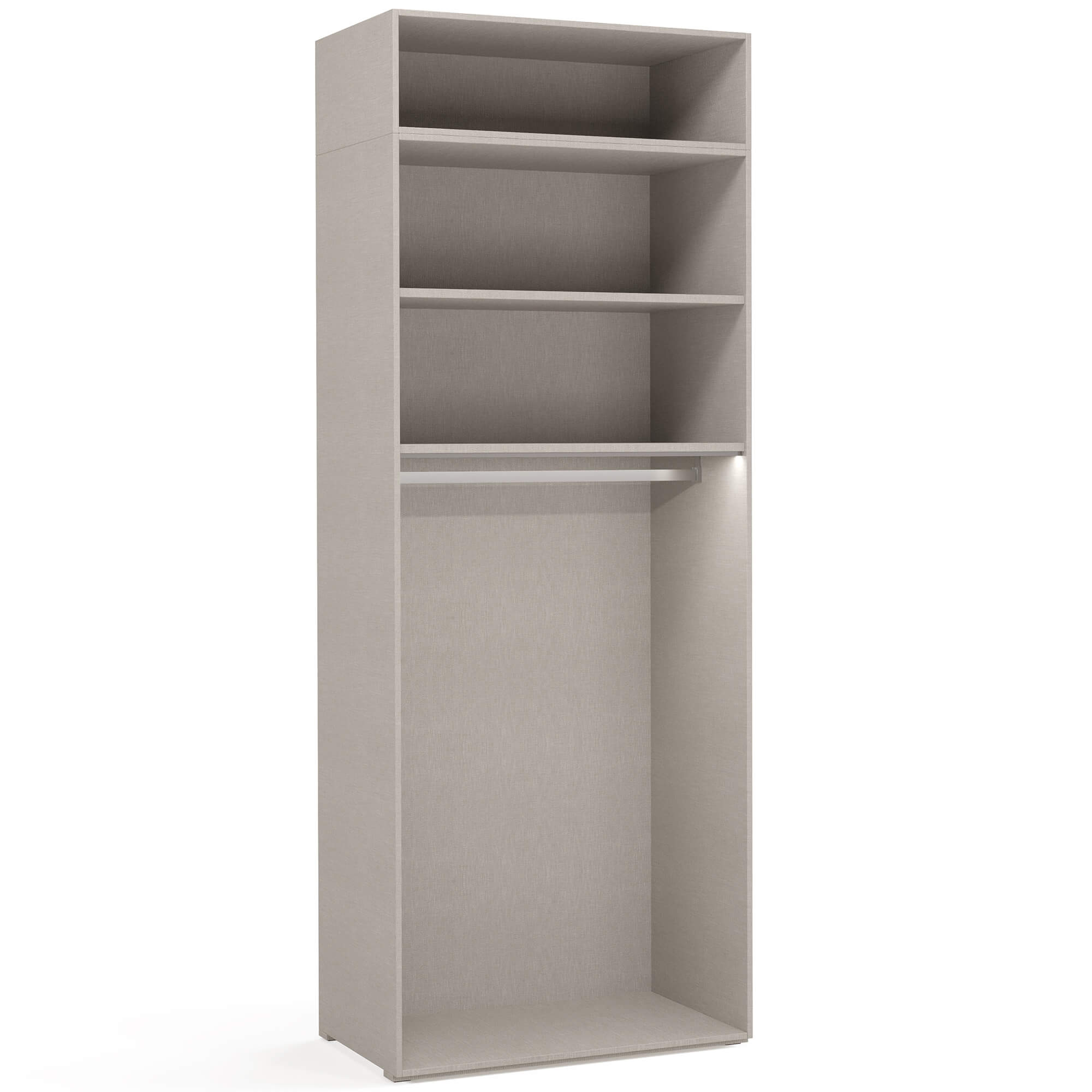 Боковые стенки (2 шт.) в текстуре Cachmere включены в стоимость. При составлении комбинации из нескольких шкафов количество стенок может варьироваться в зависимости от выбранных модулей.