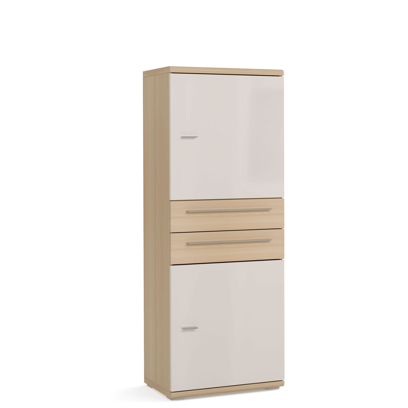 Напольный шкаф ESTE оснащен распашным фасадом и выдвижными ящиками. За фасадом расположены полки. Система плавного открывания дверей и доводчики включены в базовую комплектацию. Исполнение ручек: Хром-глянец.