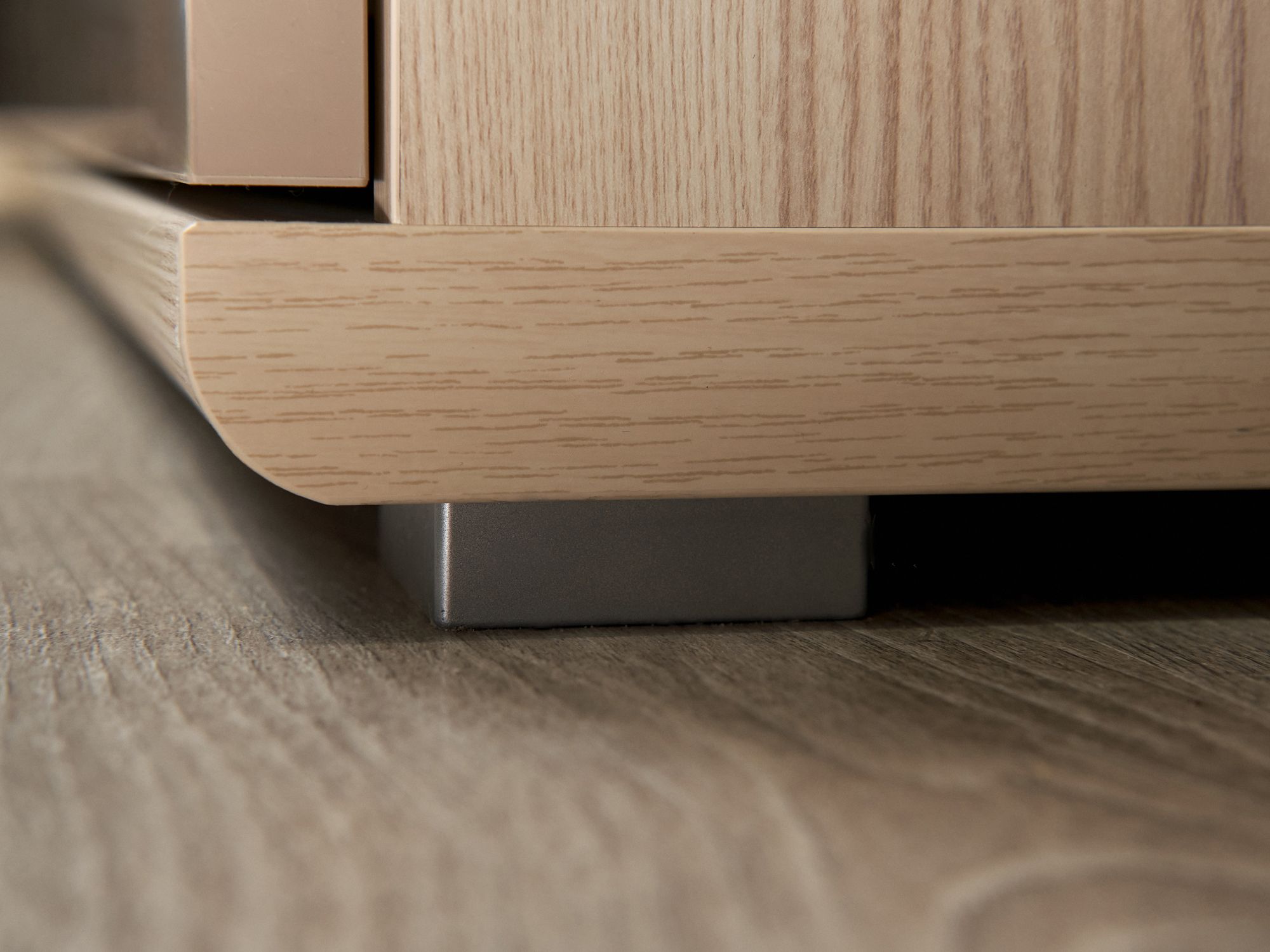 Опоры с регулировкой высоты в диапазоне до 10 мм позволяют выставить мебель идеально ровно, что обеспечивает равномерное распределение нагрузки и увеличивает срок службы. Кроме того, опоры делают мебель визуально более легкой, создавая ощущение парящих элементов.
