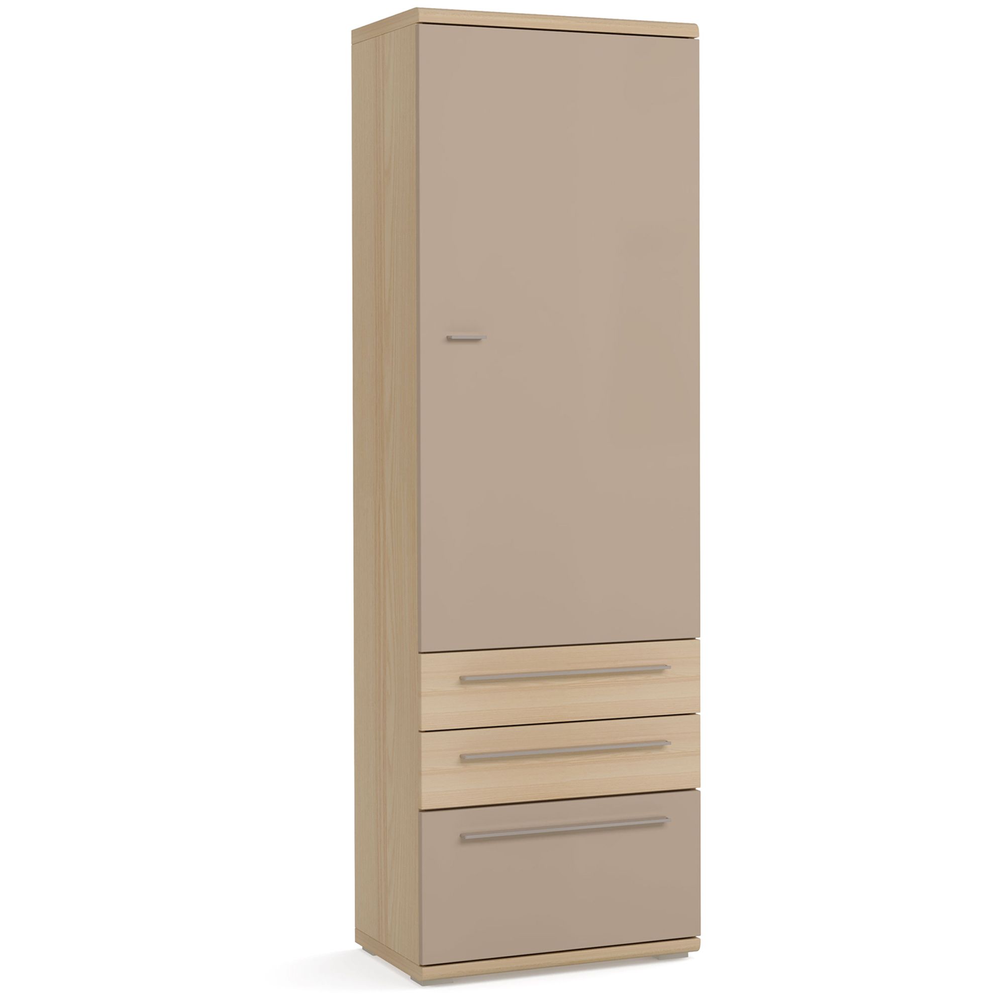 Напольный шкаф ESTE оснащен распашным фасадом и выдвижными ящиками. За фасадом расположены полки. Система плавного открывания дверей и доводчики включены в базовую комплектацию. Исполнение ручек: Хром-глянец.