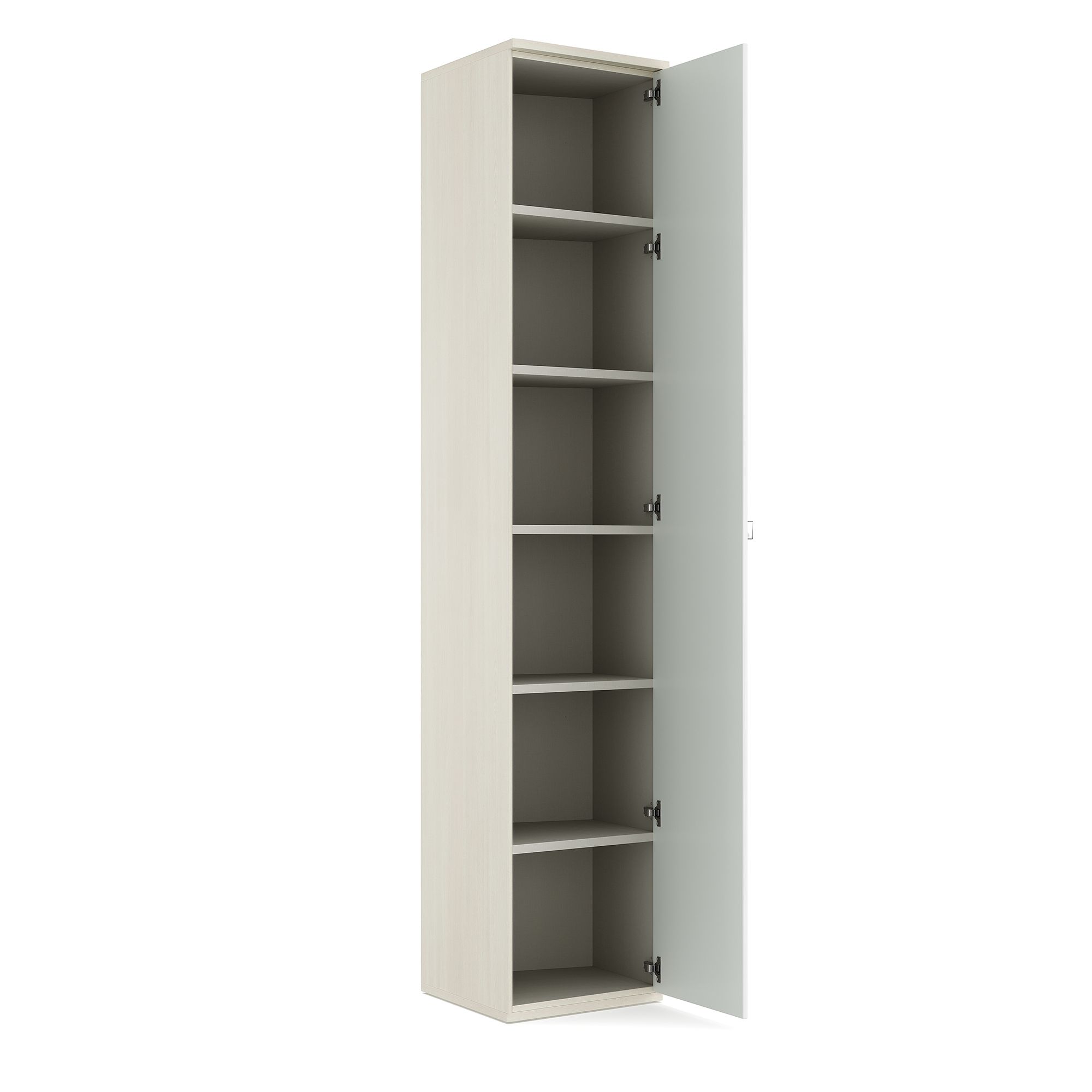 Ассортимент коллекции включает модули, позволяющие создавать системы хранения различного дизайна и конфигурации. Например, угловые модули, а также шкафы с открытыми полками, которые придают шкафной композиции завершенность.