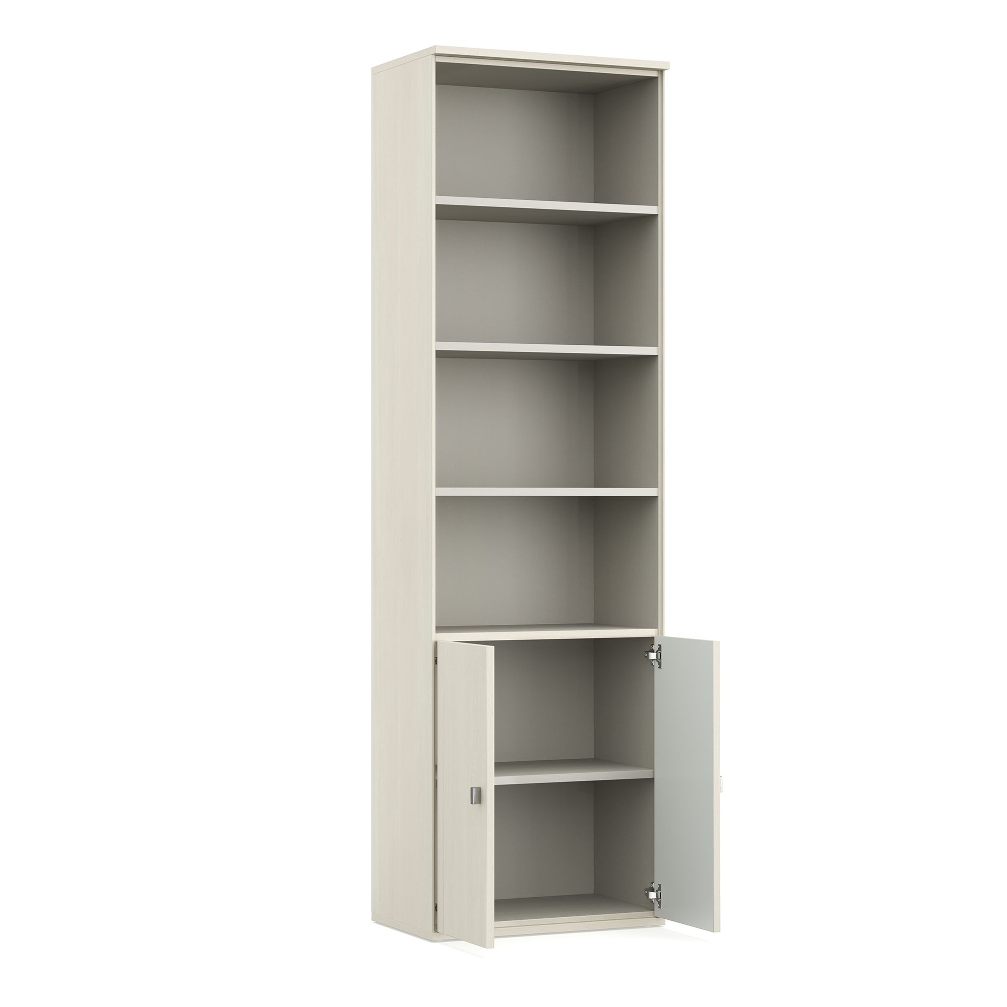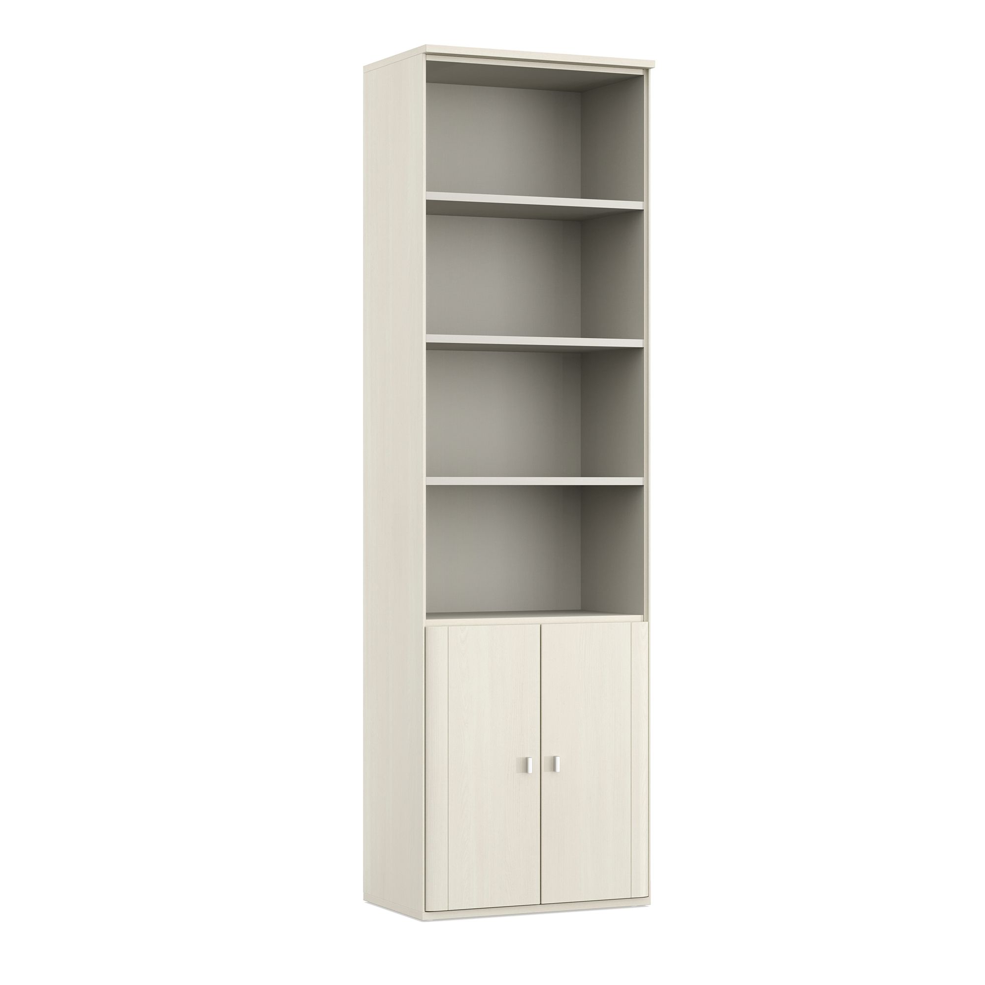 Шкаф ELEGANTE с открытыми полками и распашными фасадами отлично подходит как для гостиных, так и для молодежных комнат, домашних библиотек и рабочих кабинетов. Доводчики для плавного закрывания фасадов входят в базовую комплектацию. Дизайн шкафа предусматривает несколько вариантов ручек на выбор.