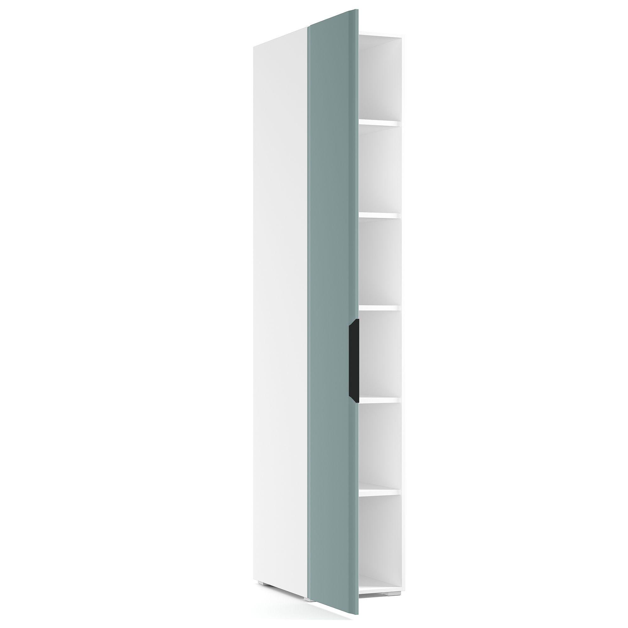 Однодверный шкаф TURIN с c фасадом в отделке тактильной шелковой эмалью оборудован пятью полками из ДСП. Ножки входят в комплектацию. Возможна навеска дверей как на левую,так и на правую сторону.
