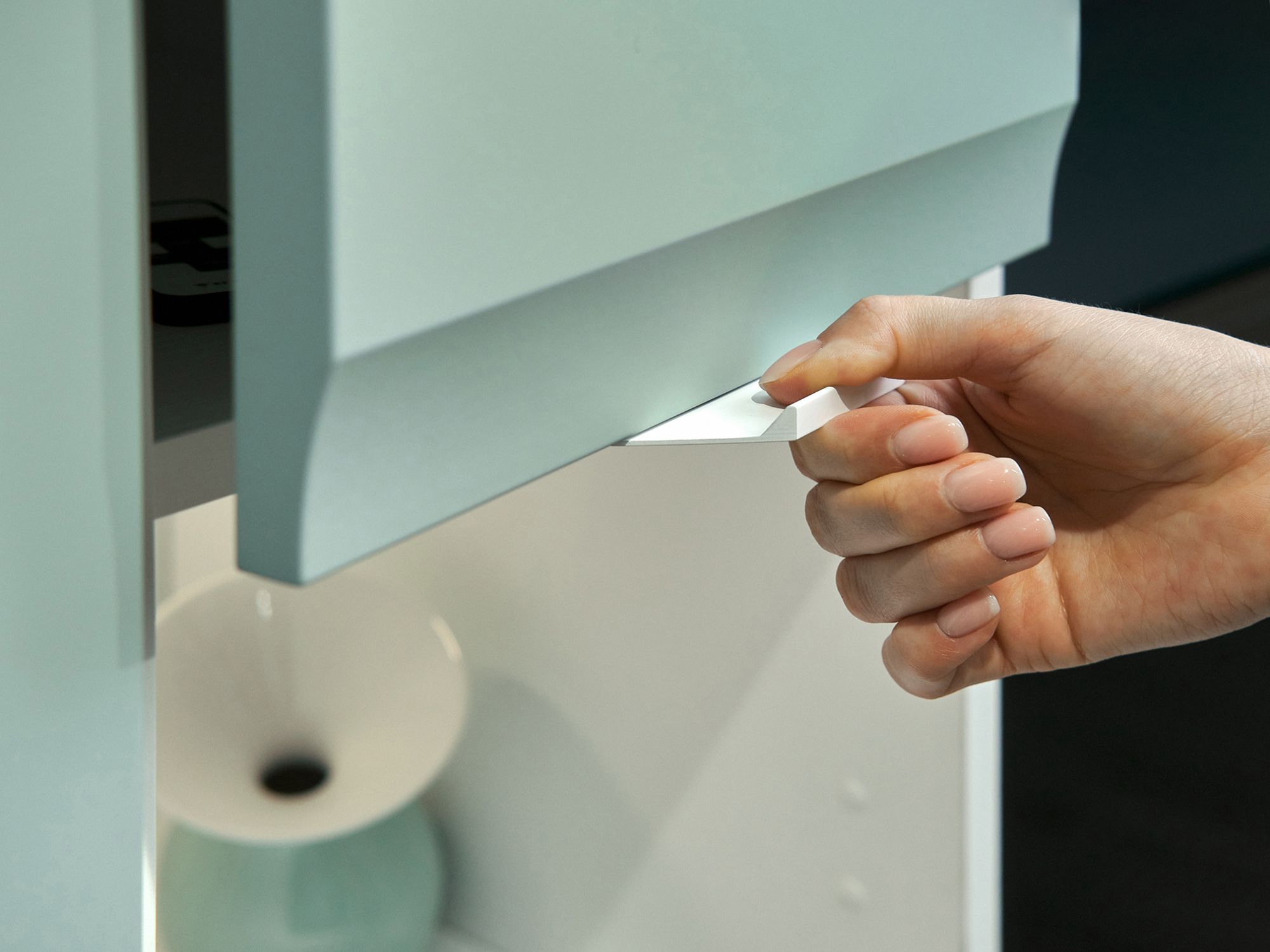 Благодаря многослойной отделке эмалью фасады коллекции не имеют острых кромок, что делает взаимодействие с мебелью тактильно приятным и повышает безопасность использования.