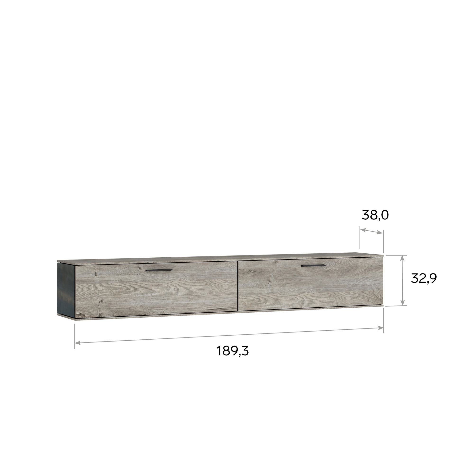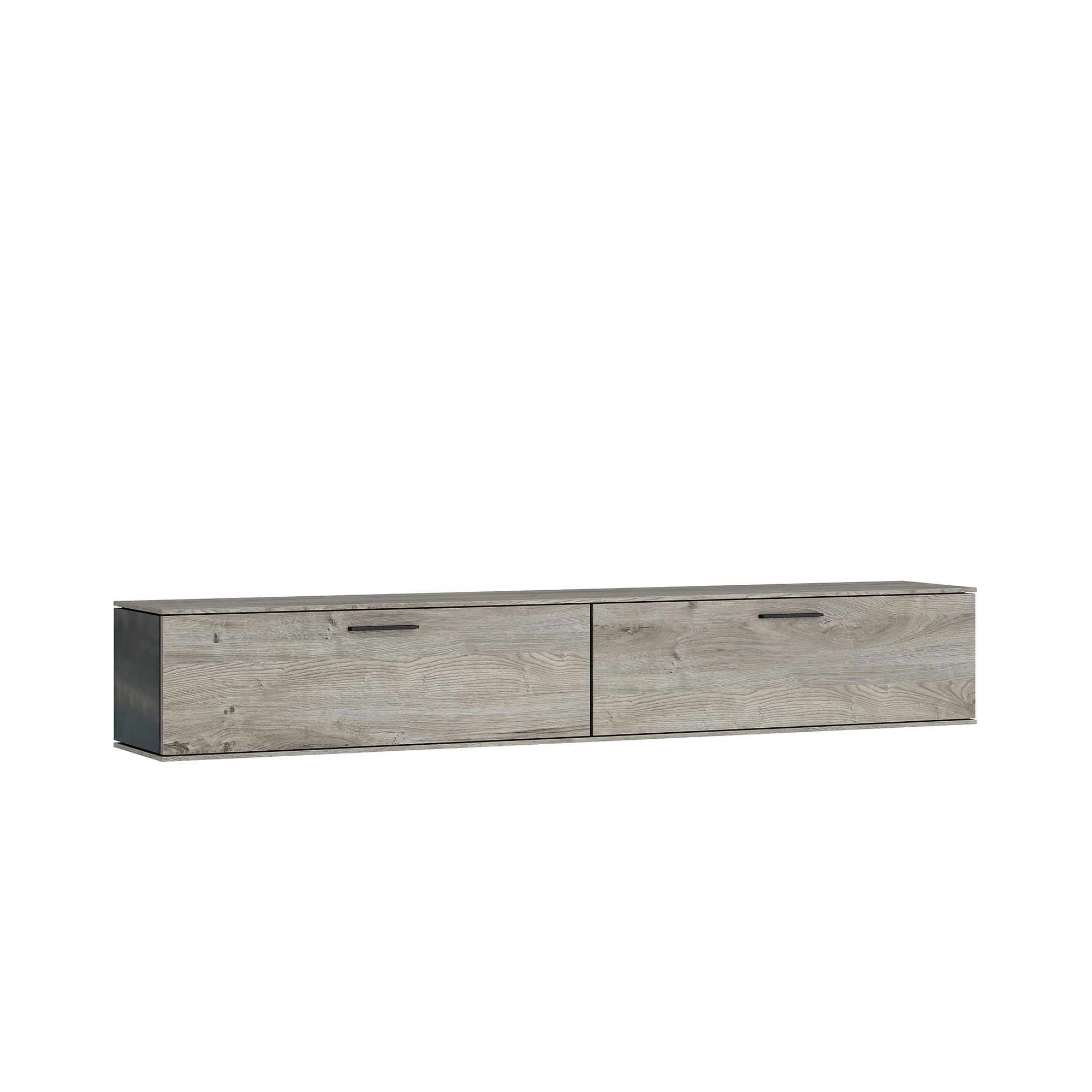 Двухсекционный навесной шкаф BOSTON оснащен откидными фасадами с надежным механизмом, рассчитанным на весь срок службы мебели (направление открывания – вниз).