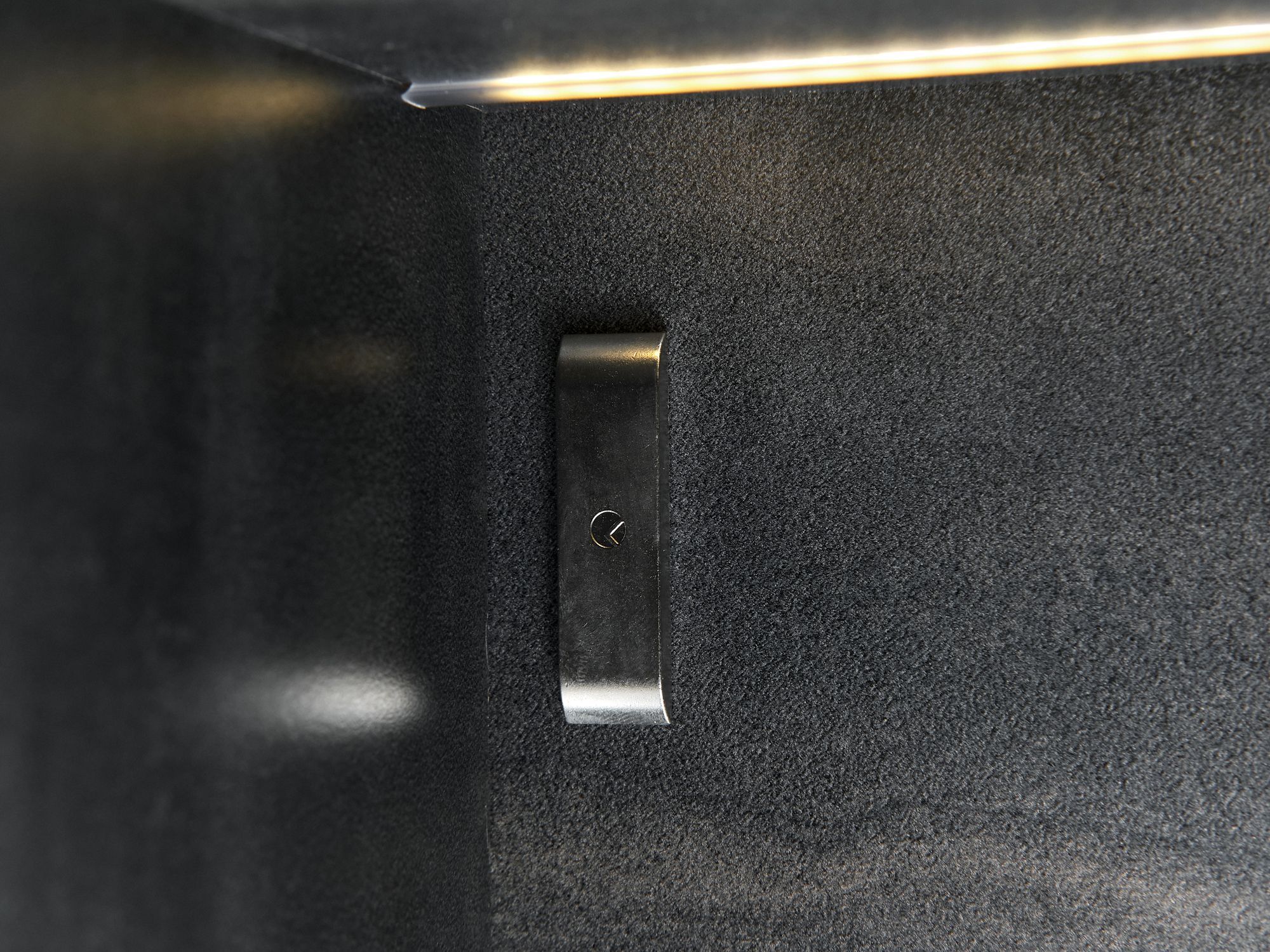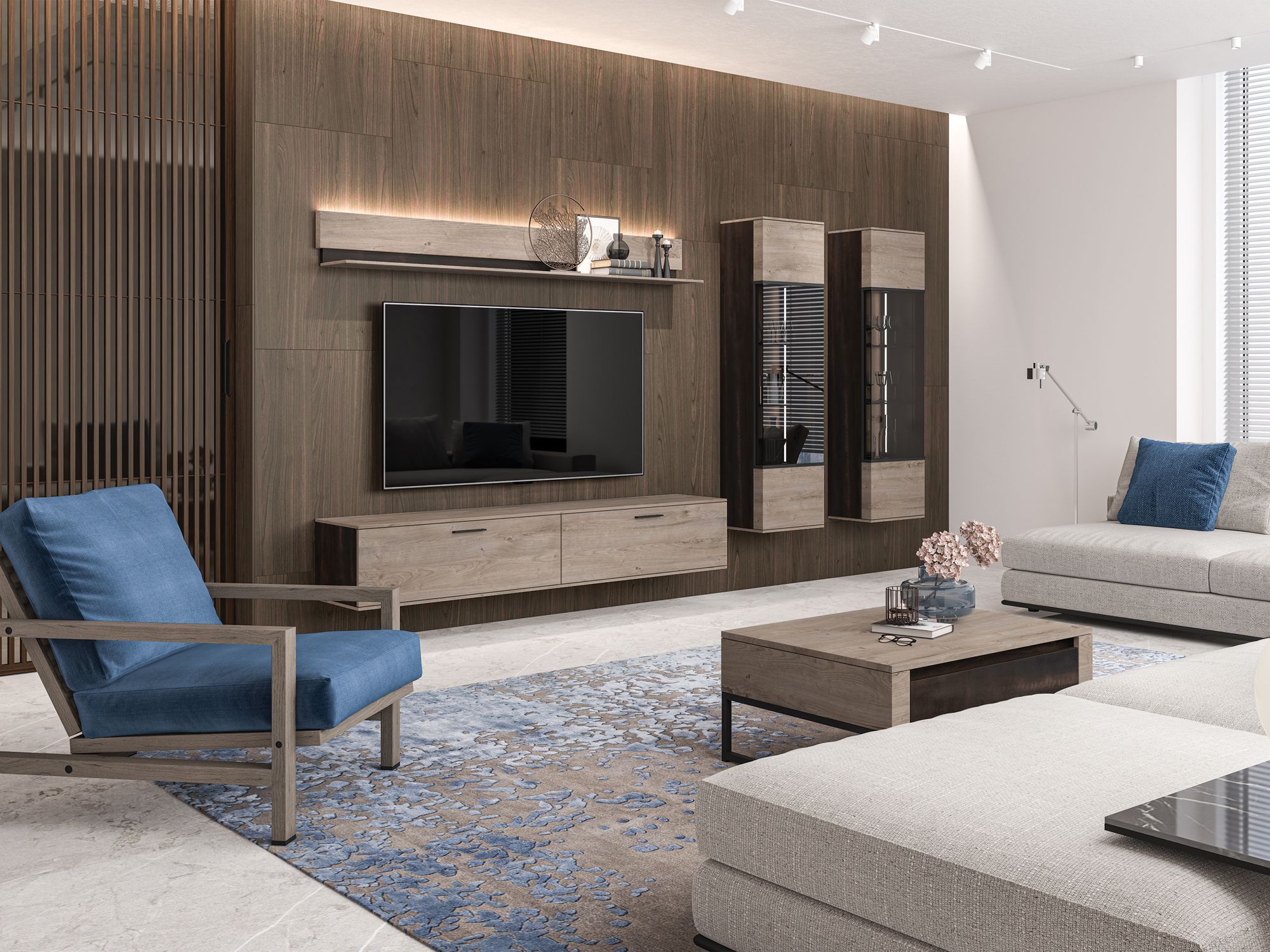 Корпуса шкафов выполнены в отделке текстурой Galaxy, зрительно и на ощупь напоминающей природный камень или поверхность темного металла с характерным рельефом. Дизайн корпуса органично дополняют фасады с текстурой Galaxy в отделке прозрачным лаком, которая раскрывает глубину рисунка.