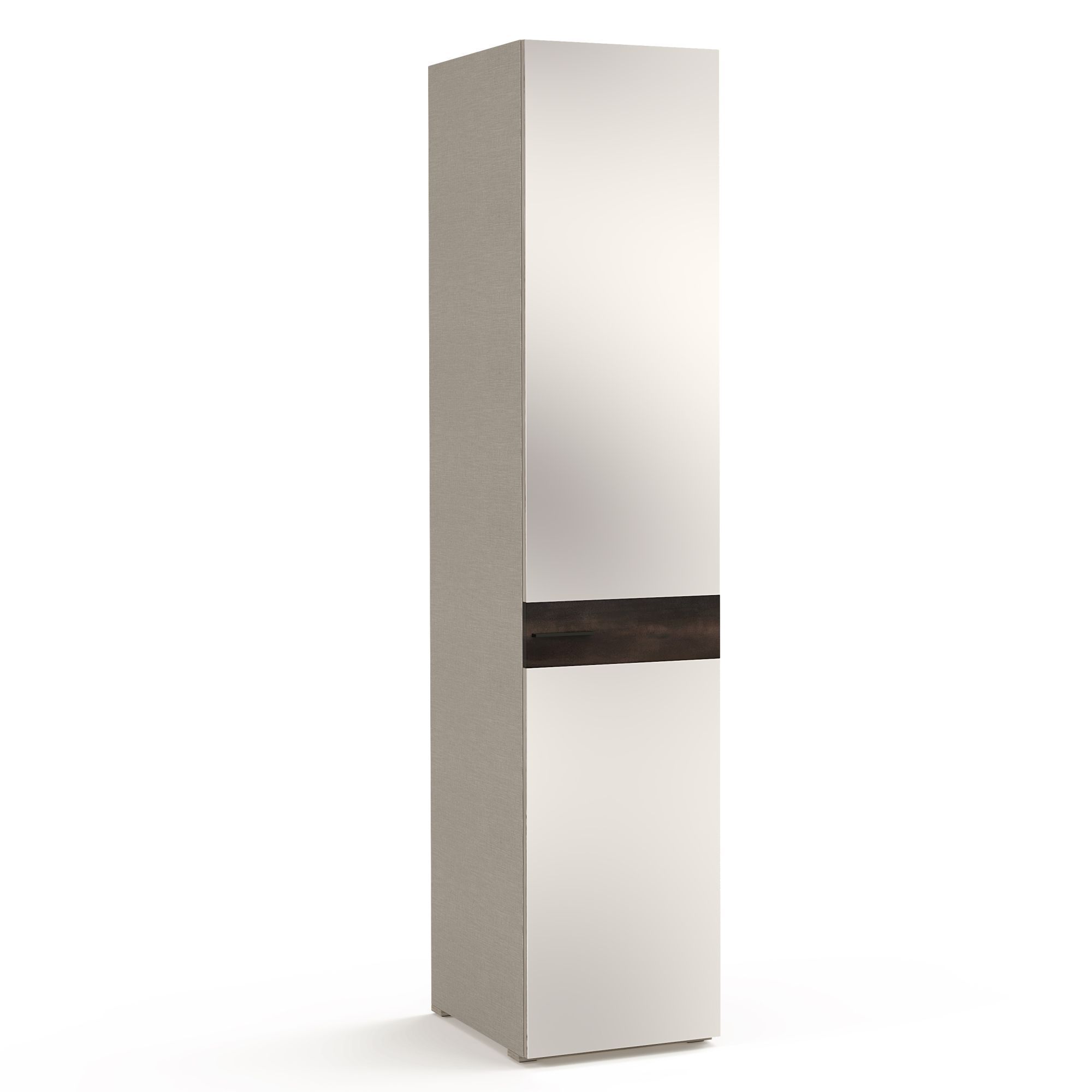 Зеркальный фасад однодверного шкафа BOSTON декорирован контрастной вставкой. Корпус выполнен в текстуре Шенилл, имитирующей натуральную ткань. Внутреннее наполнение представляет собой пять полок. Конструкция шкафа предусматривает возможность индивидуального формирования системы хранения за счет выбора дополнительных элементов внутреннего наполнения – полок, штанг и вставных тумб (заказываются отдельно).