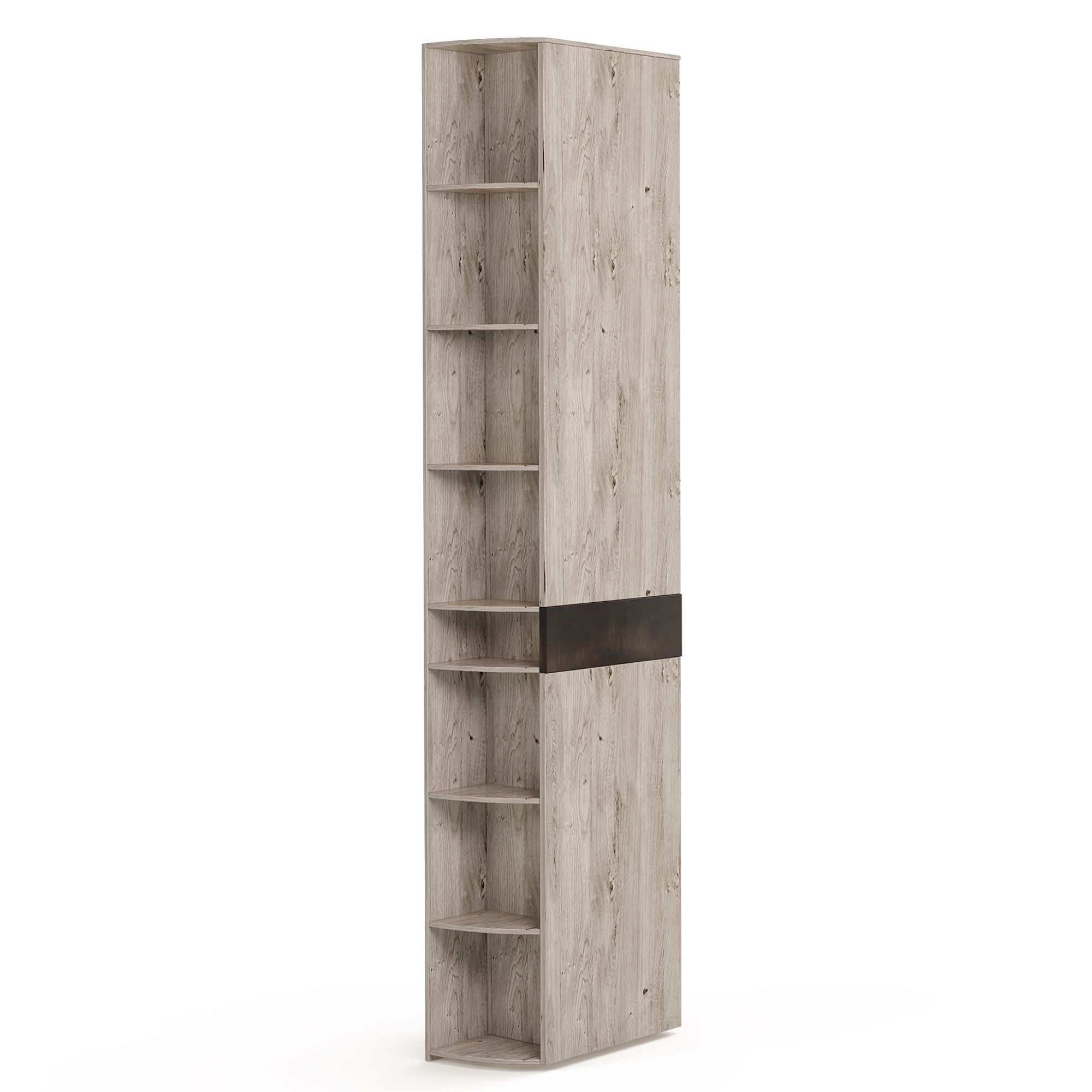 Завершающие шкафы BOSTON выполнены в текстуре Дуб Grande со вставкой из гибридной текстуры. Элементы используются для придания завершенности шкафной композиции и крепятся к смежному шкафу при помощи межсекционных стяжек.