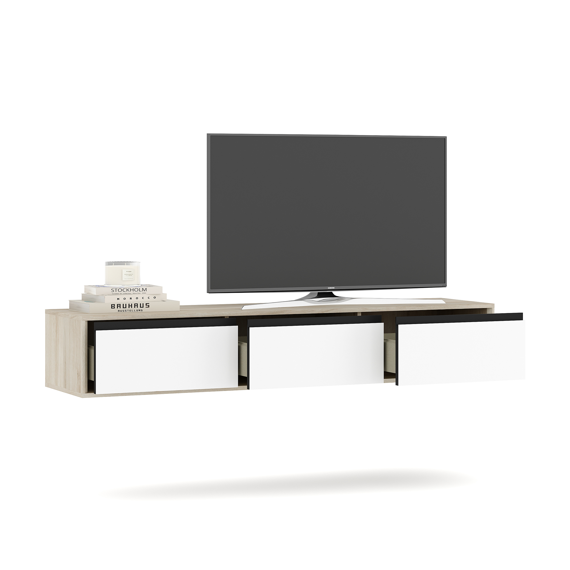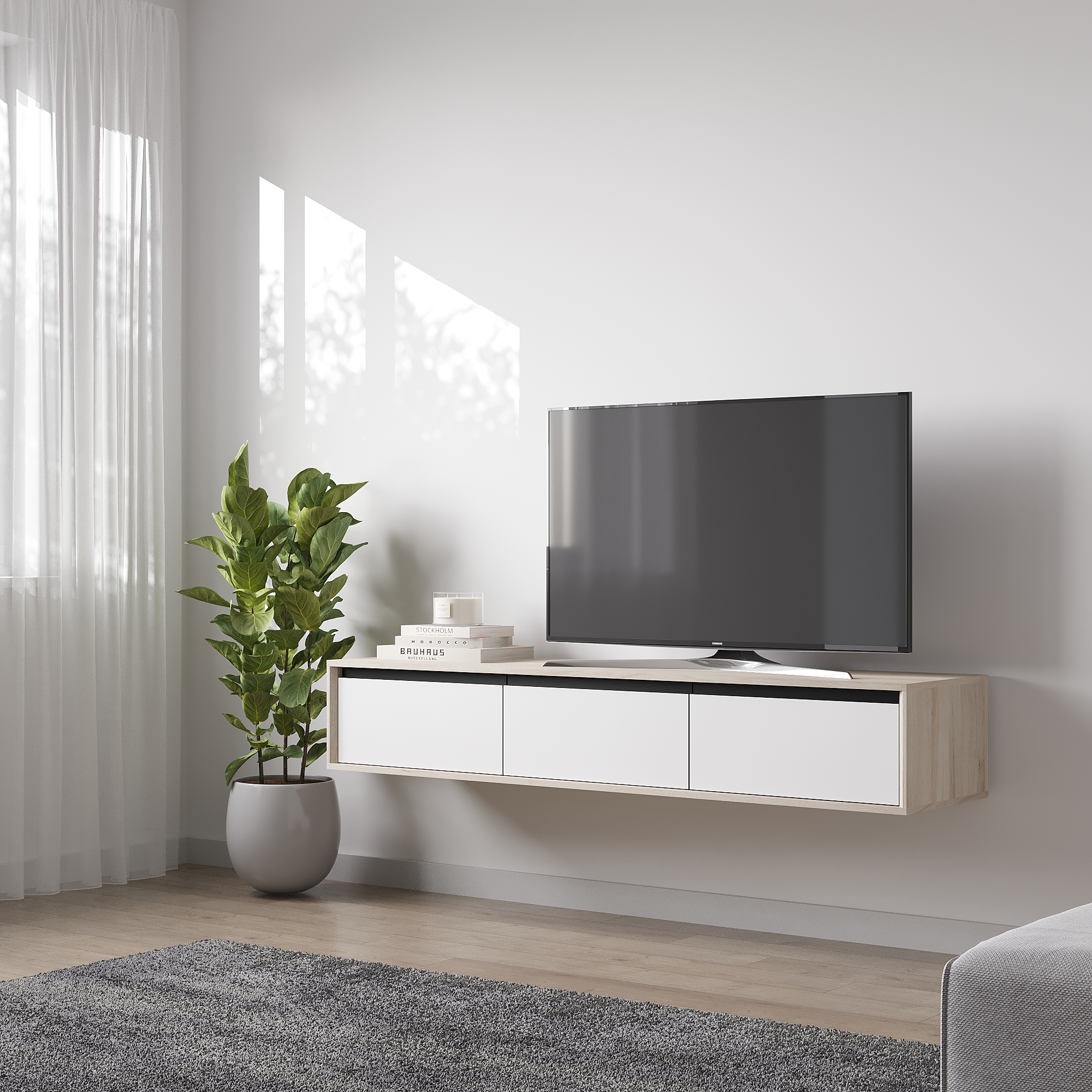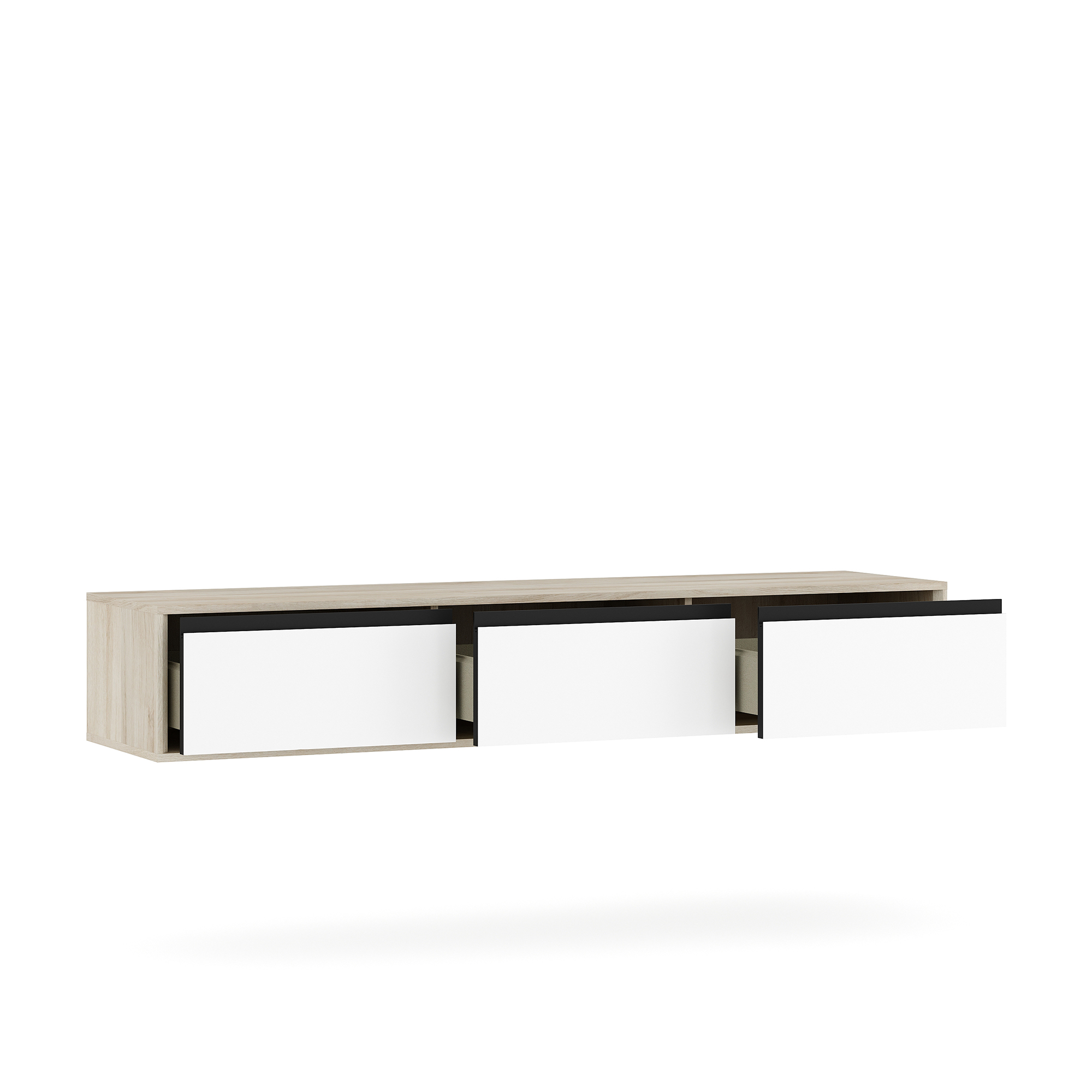 Навесной шкаф LUNA глубиной 42,5 см и шириной 170,1 см с корпусом в текстуре Дуб Anziano оснащен тремя выдвижными ящиками с интегрированными J-ручками. Максимальная допустимая распределенная нагрузка 30 кг.
