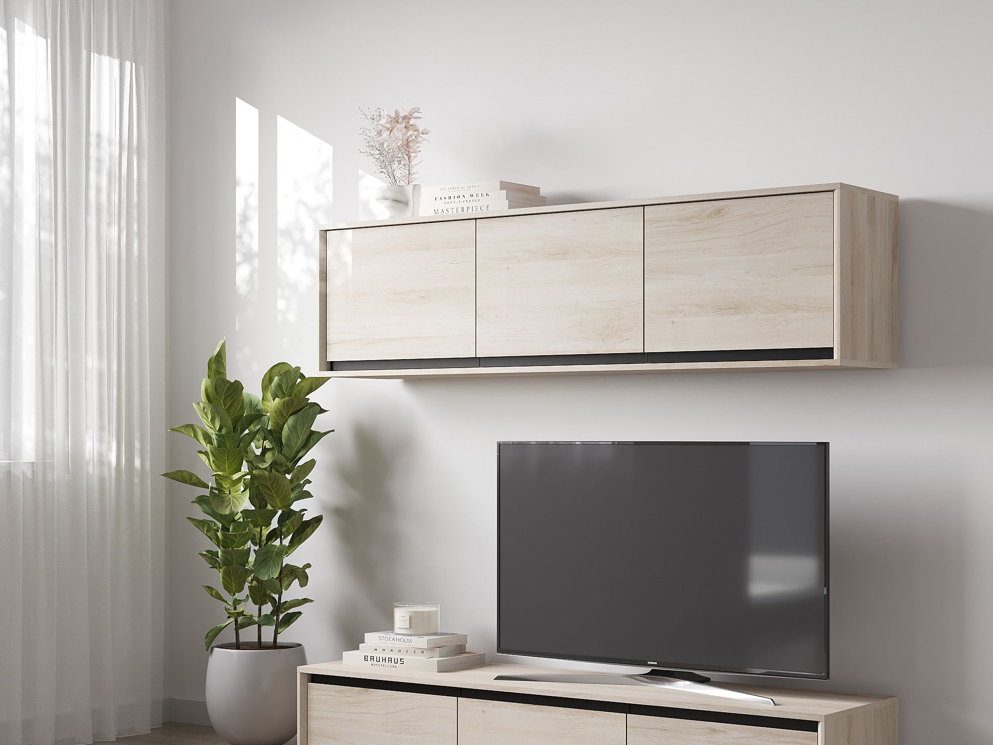 Широкие возможности комбинирования напольных и подвесных элементов позволяют создавать как функциональные композиции с вместительными системами хранения, так и легкие, минималистичные интерьерные решения.