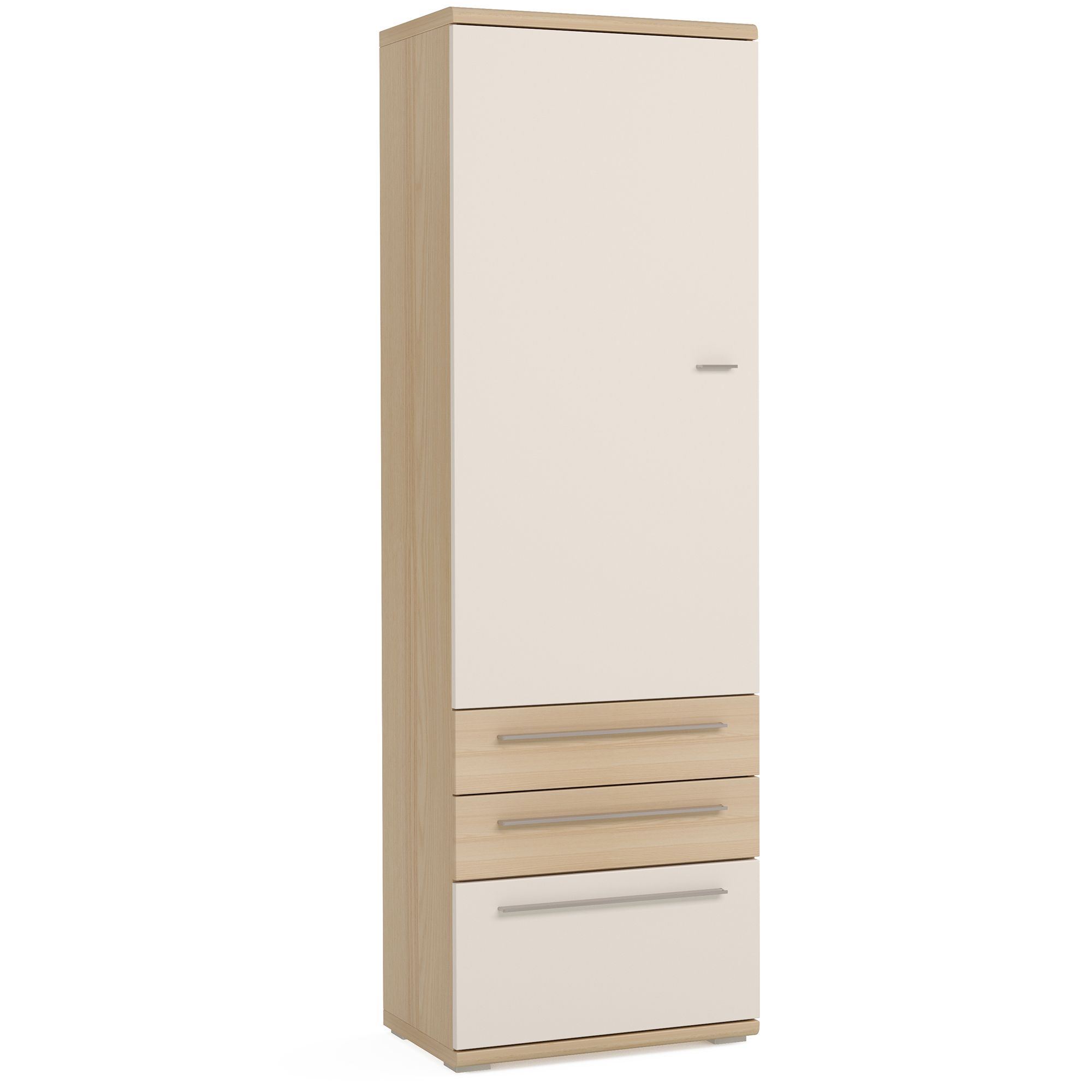 Напольный шкаф ESTE оснащен распашным фасадом и выдвижными ящиками. За фасадом расположены полки. Система плавного открывания дверей и доводчики включены в базовую комплектацию. Исполнение ручек: Хром-глянец.
