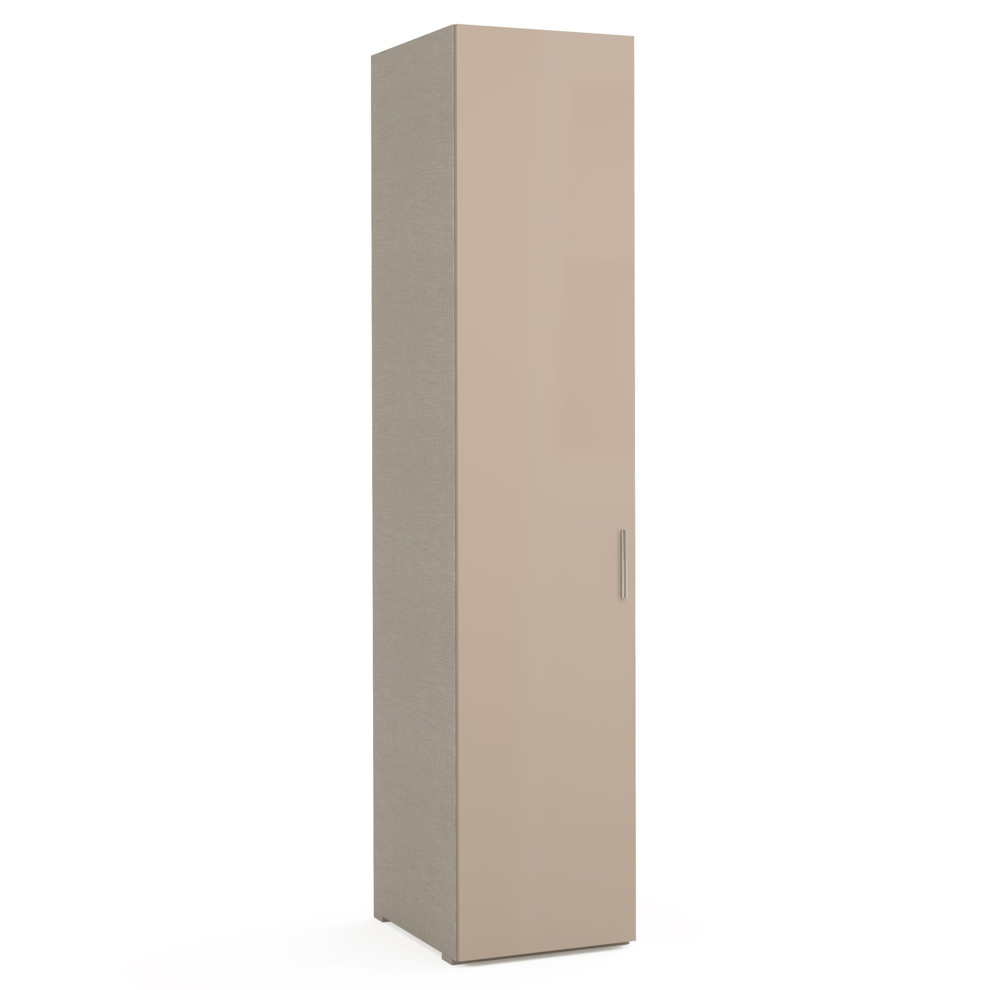 Однодверный шкаф ESTE оснащен фасадом в высокоглянцевой отделке Mokko. За ним размещены две полки, к нижней из которых крепится штанга. Внешний и внутренний декор корпуса выполнен в текстуре Шенилл темный. В комплектацию включены ручки в отделке Хром-глянец. Предусмотрена возможность замены на ручки в отделке Черный никель. ВАЖНО! Глубина шкафа указана без учета фасада. Боковые стенки и карнизы соответствующей конфигурации (с закруглением или без) заказываются отдельно.