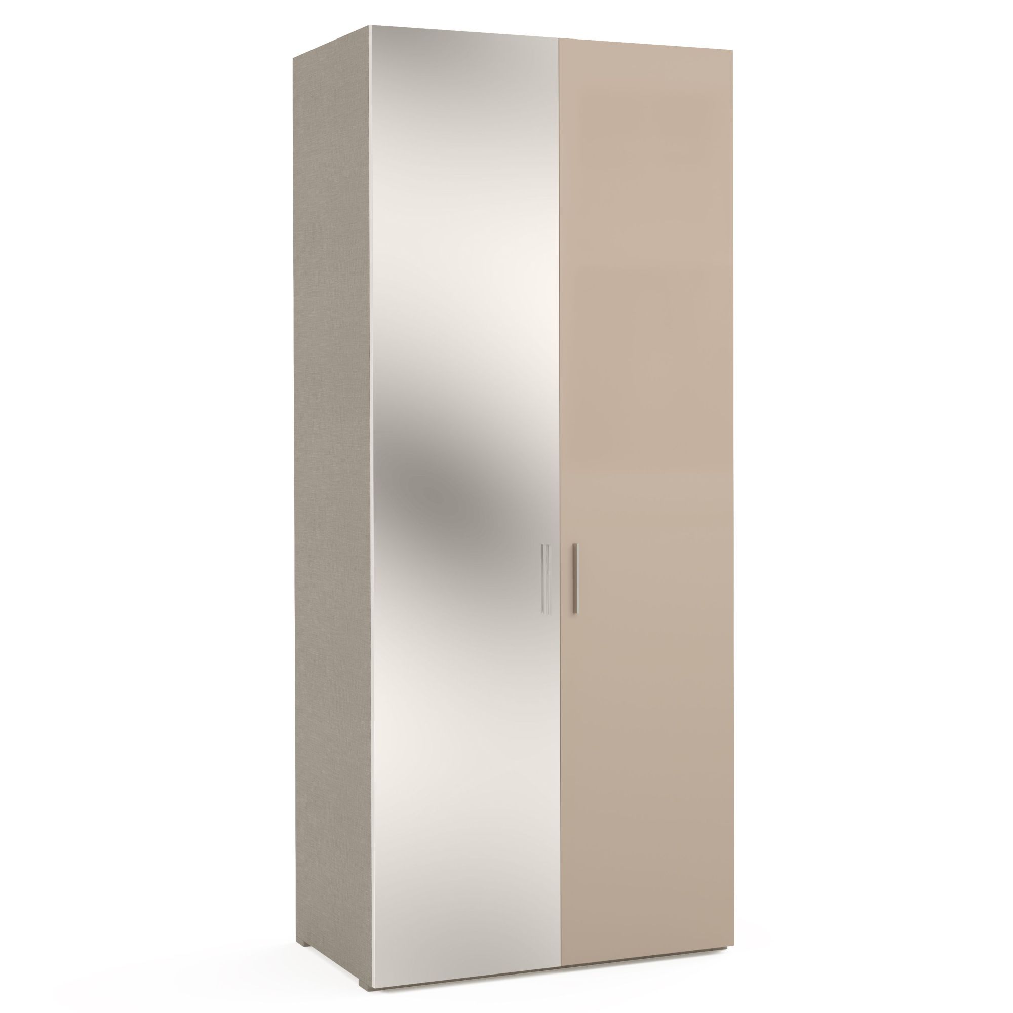 Дизайн двухдверного шкафа ESTE построен на сочетании зеркального фасада и фасада в высокоглянцевой отделке Mokko. За фасадами размещена полка с прикрепленной к ней штангой. Предусмотрена возможность дозаказа вставной тумбы с выдвижными ящиками. Внешний и внутренний декор корпуса выполнен в текстуре Шенилл. Шкаф оборудован системой подсветки, которая автоматически включается при открывании. В комплектацию включены ручки в отделке Хром-глянец. Предусмотрена возможность замены на ручки в отделке Черный никель. ВАЖНО! Глубина шкафа указана без учета фасада. Система включения с трансформатором, а также боковые стенки и карнизы соответствующей конфигурации (с закруглением или без) заказываются отдельно.