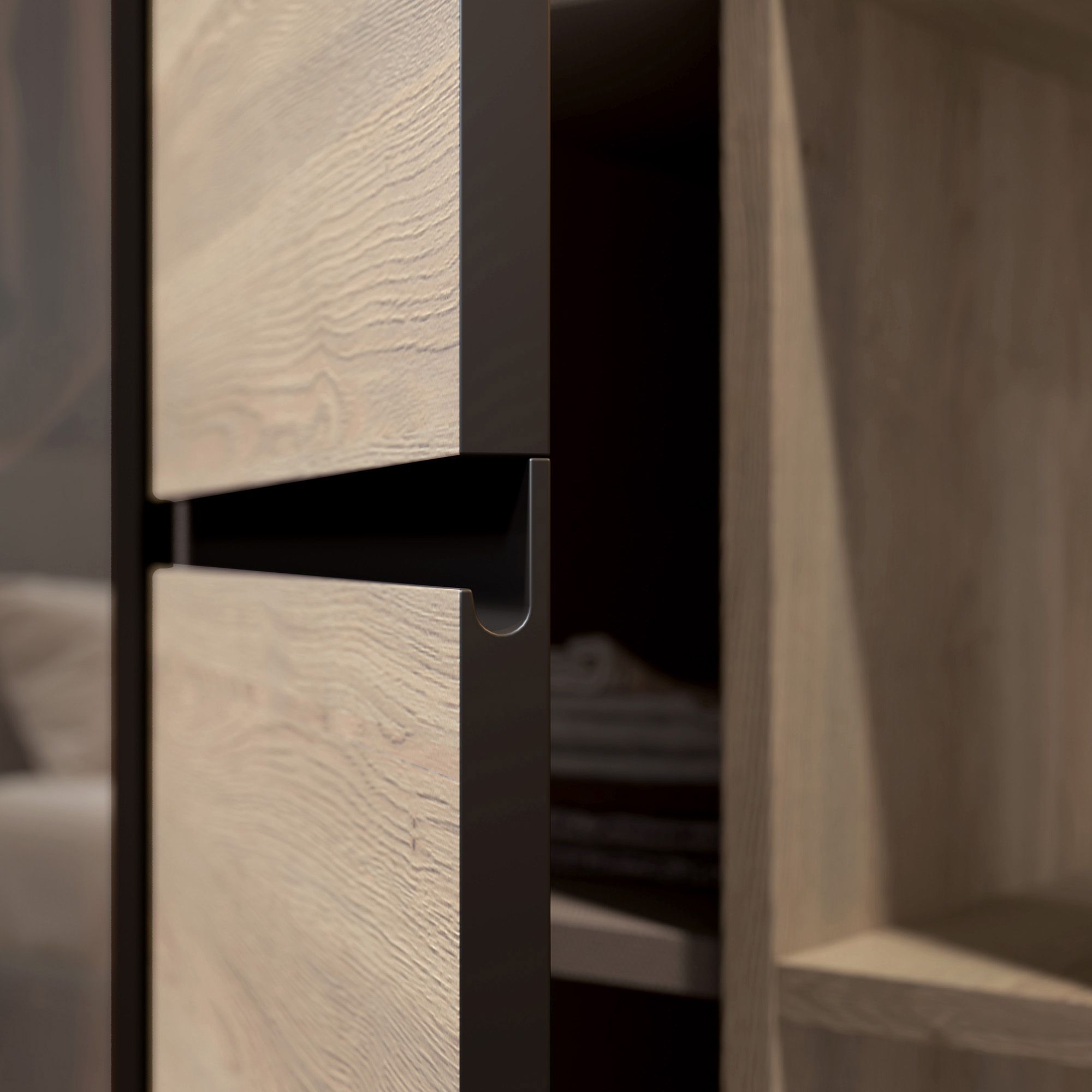 J-ручка – это современная и эргономичная система открывания, которую оценят все поклонники минималистичного дизайна. Решение, использованное в коллекции, позволило отказаться от внешней фурнитуры, что обеспечивает удобство, безопасность и простоту в уборке.