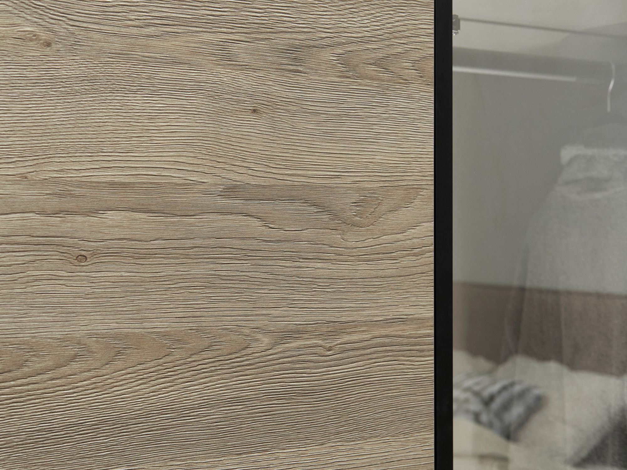 Отделка создает полное ощущение натурального дерева благодаря точнейшей проработке рисунка и рельефа. Тактильная поверхность создается с использованием инновационной технологии «глубокая пора». Текстура представлена в двух оттенках: Серо-бежевый и Сепия.