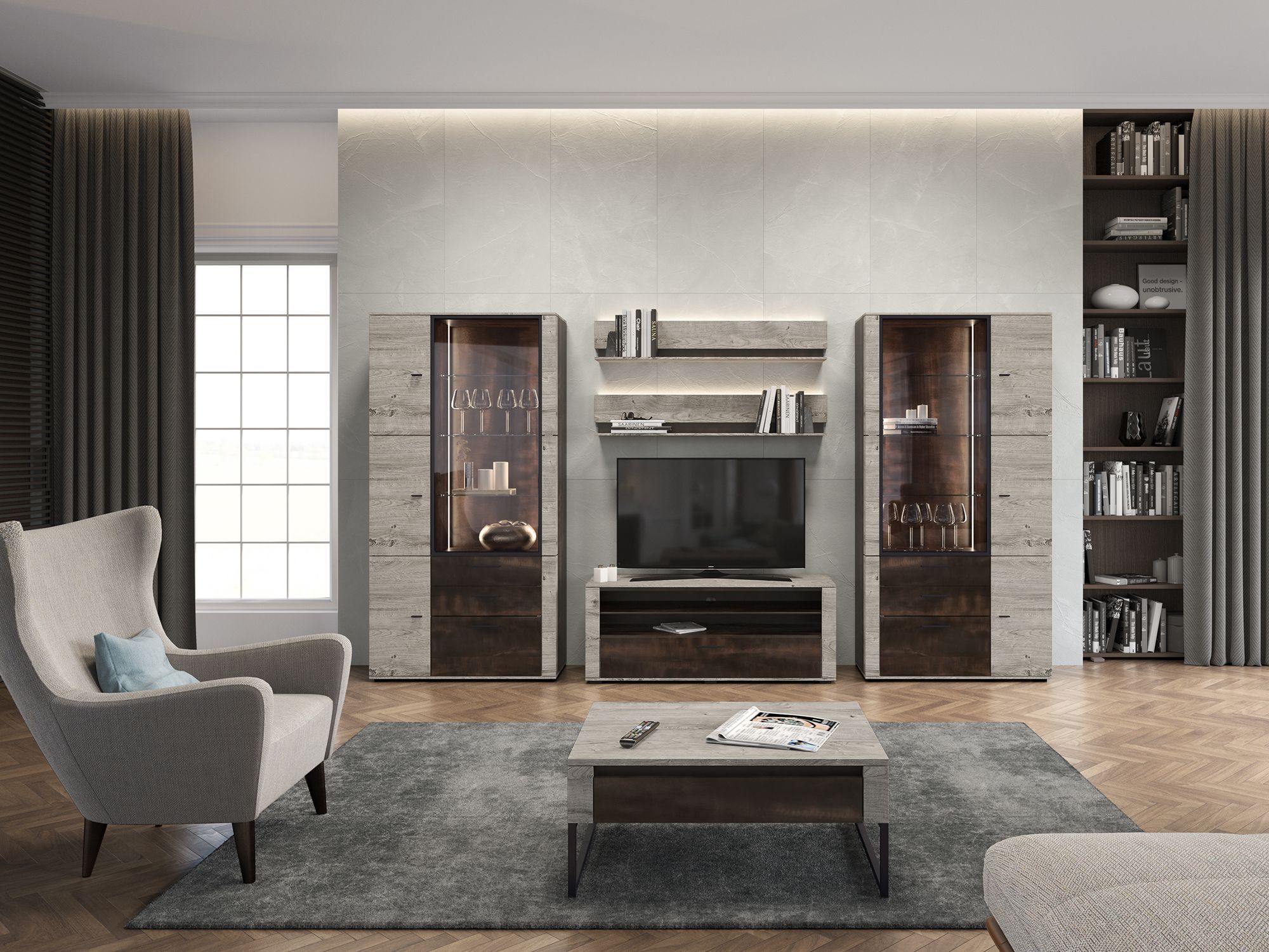 Ассортимент коллекции включает шкафы со стеклом, тонированным в оттенок Бронза, и тонированными стеклянными полками, которые придают композиции легкость и глубину. Закаленное стекло обладает гораздо более высокой прочностью, чем обычное, и безопасно даже при случайном разрушении.