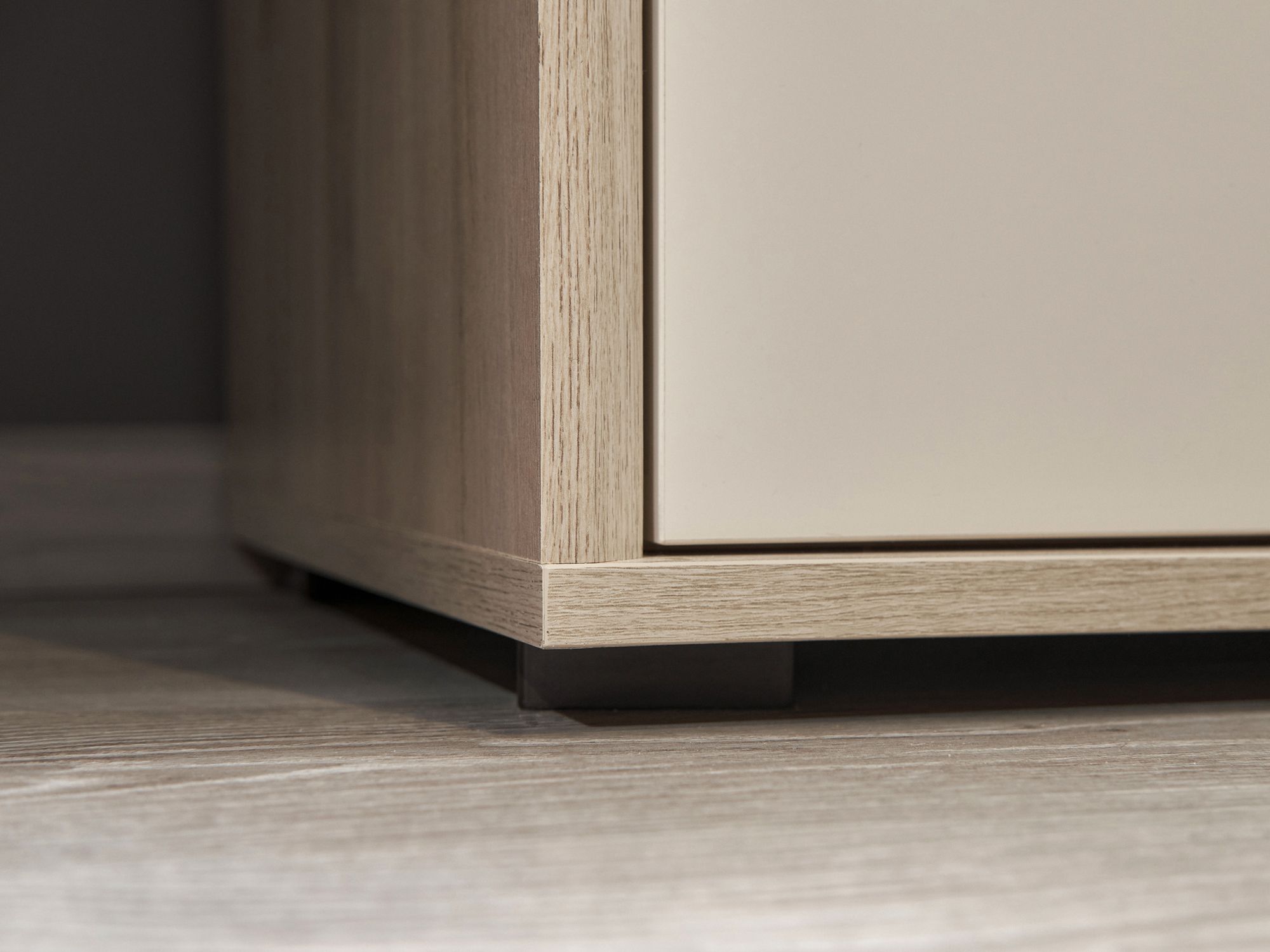 Опоры с регулировкой высоты в диапазоне до 10 мм позволяют выставить шкафы и тумбы идеально ровно. Возможность регулирования задних опор изнутри платяного шкафа обеспечивает точность сборки мебели и удобство регулировки, тем самым продлевая срок ее службы.