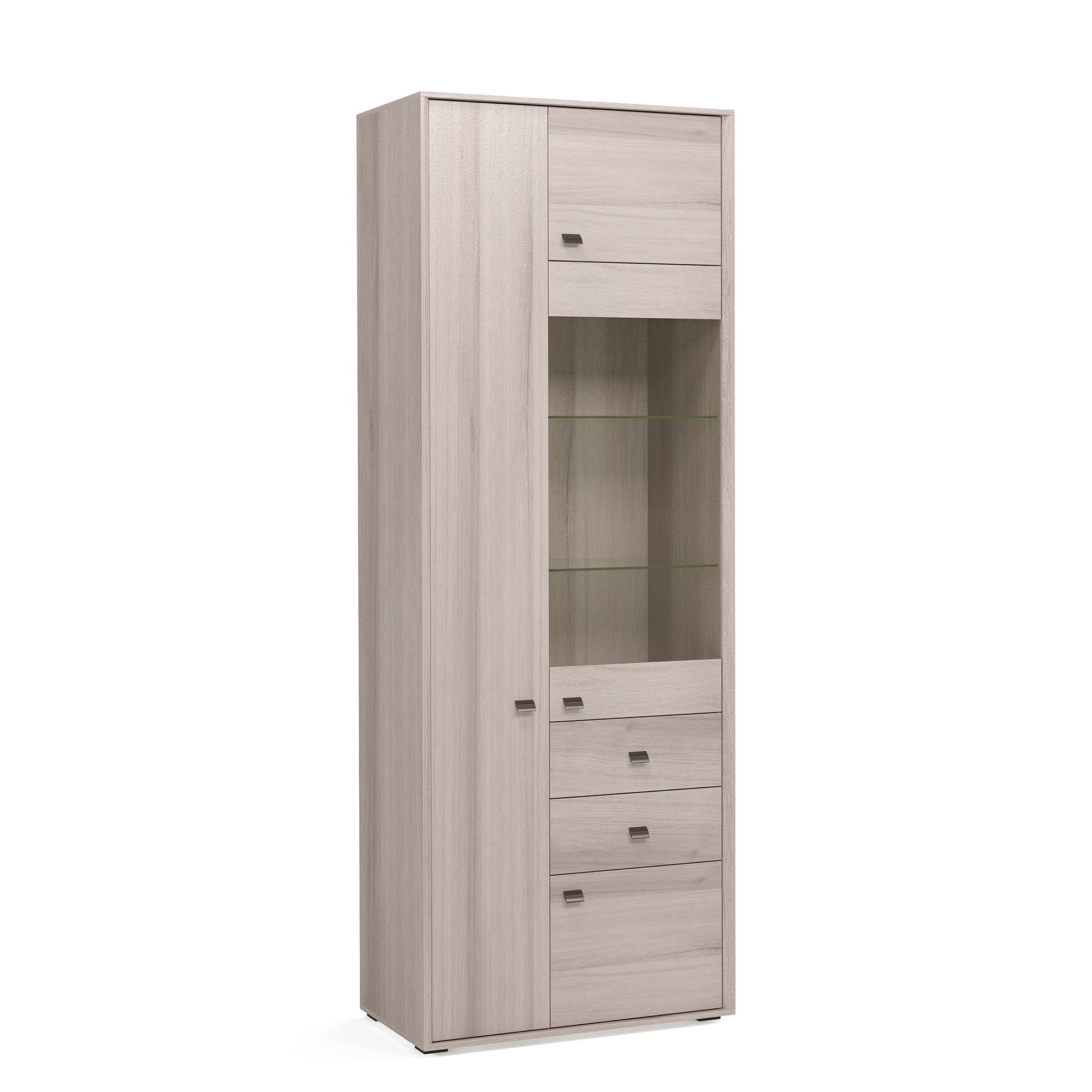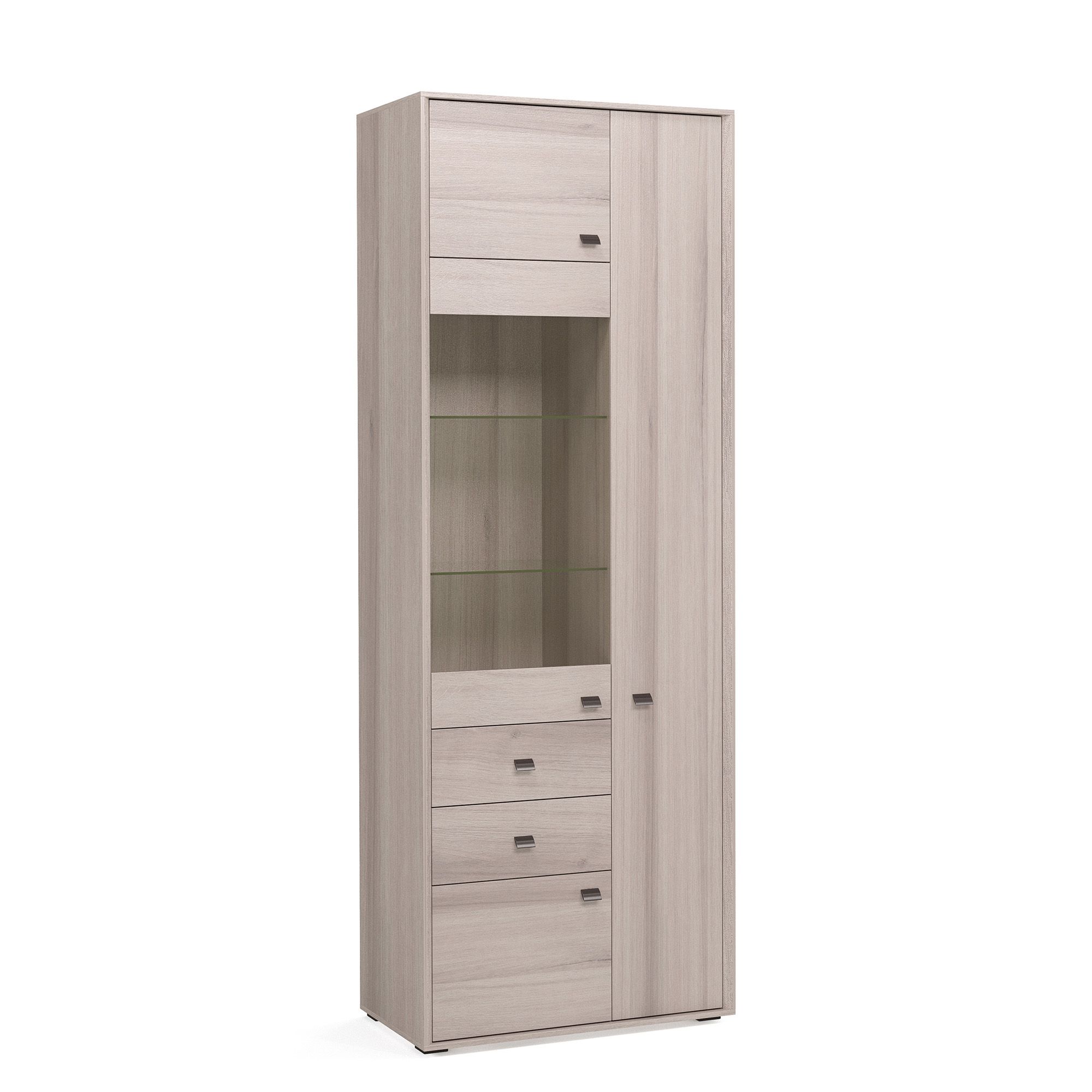 Шкаф-витрина ALTERA с полками и выдвижными ящиками отлично подходит как для гостиных, так и для молодежных комнат, домашних библиотек и рабочих кабинетов. Конструкция предусматривает вариант зеркального расположения секций. Доводчики и направляющие для плавного закрывания включены в базовую комплектацию. Стандартный комплект ручек входит в комплектацию. Вы можете подобрать к шкафу ручки другого дизайна (заказываются отдельно).